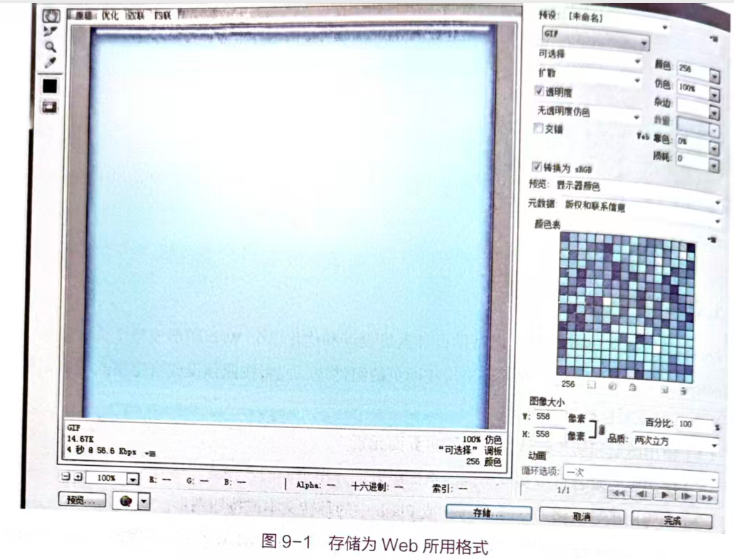 运用菜单 "存储为 Web 所用格式" 命令,可以将图像文件转化为 Web 所用格式文件,如图 9-1 所示。