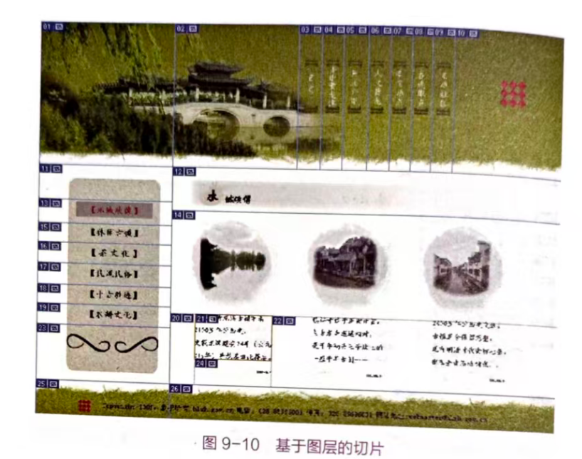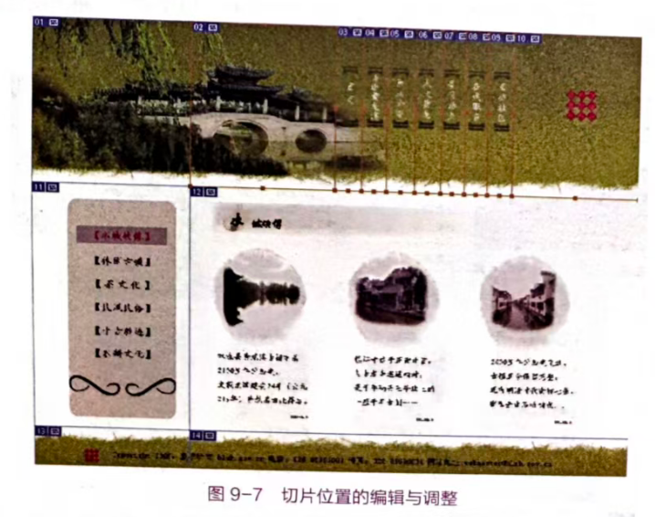(6)运用 "切片选择" 工具,根据图像的状况对切片 01 到切片 10 进行位置的编辑与调整,效果如图 9-7 所示。