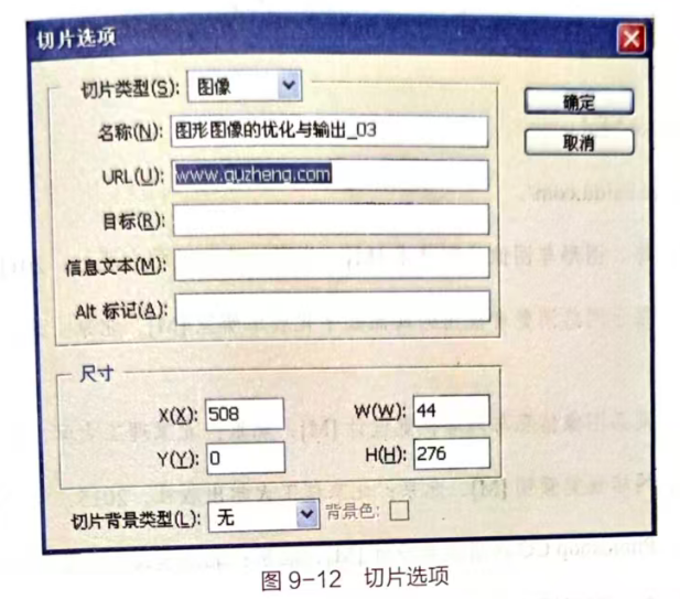 (1)选择一个切片。用切片选择工具双击该切片,显示 "切片选项" 对话框。
