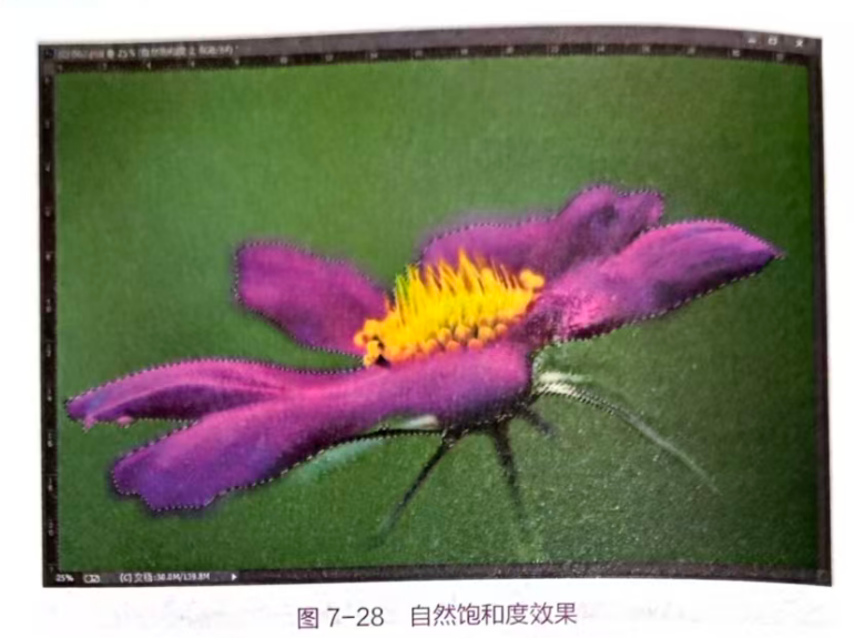 (6)完成自然饱和度图层效果参数设置后,在图层面板设置混合模式为 "正常",不透明度为 100%,填充值为 100%,如图 7-28 所示。