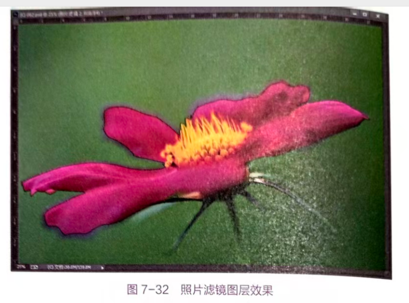 (10)完成照片滤镜图层效果参数设置后,在图层面板设置混合模式为 "正常",不透明度为 100%,填充值为 100%,如图 7-32 所示。
