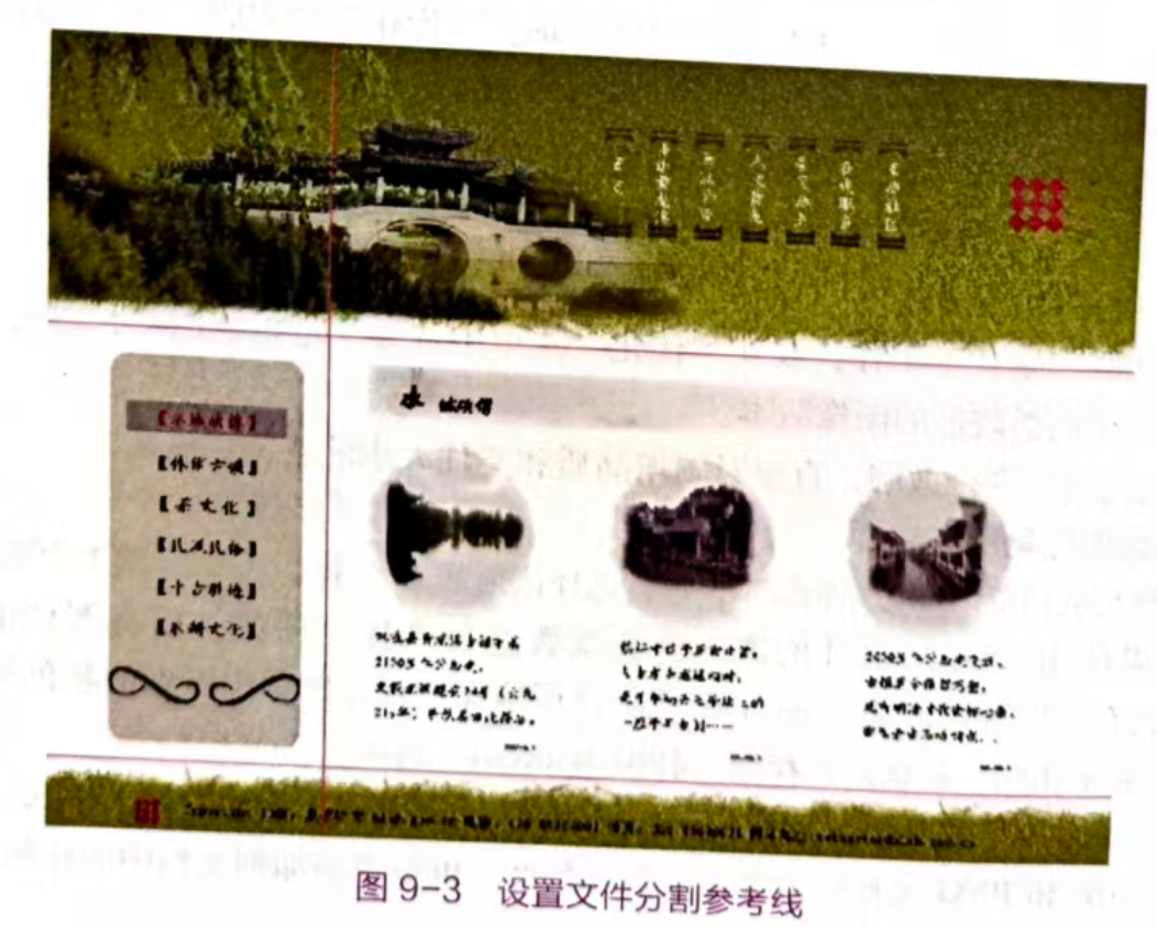(2)设置文件分割参考线,在文件中显示标尺,用移动工具从标尺中移出参考线,对文件图像的版面进行布局,如图 9-3 所示。