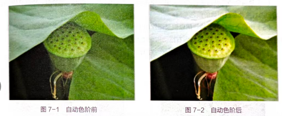当使用自动色阶命令时,系统不会显示任何对话框,而只以默认的值来调整图像颜色的亮度。一般说来,这种调整只能是对该图像所有颜色来进行,而不能只针对某一种色彩来调整。例如,打开一个文件(如图 7-1 所示),使用自动色阶 "Shift+Ctrl+L" 命令对其进行调整(如图 7-2 所示)。