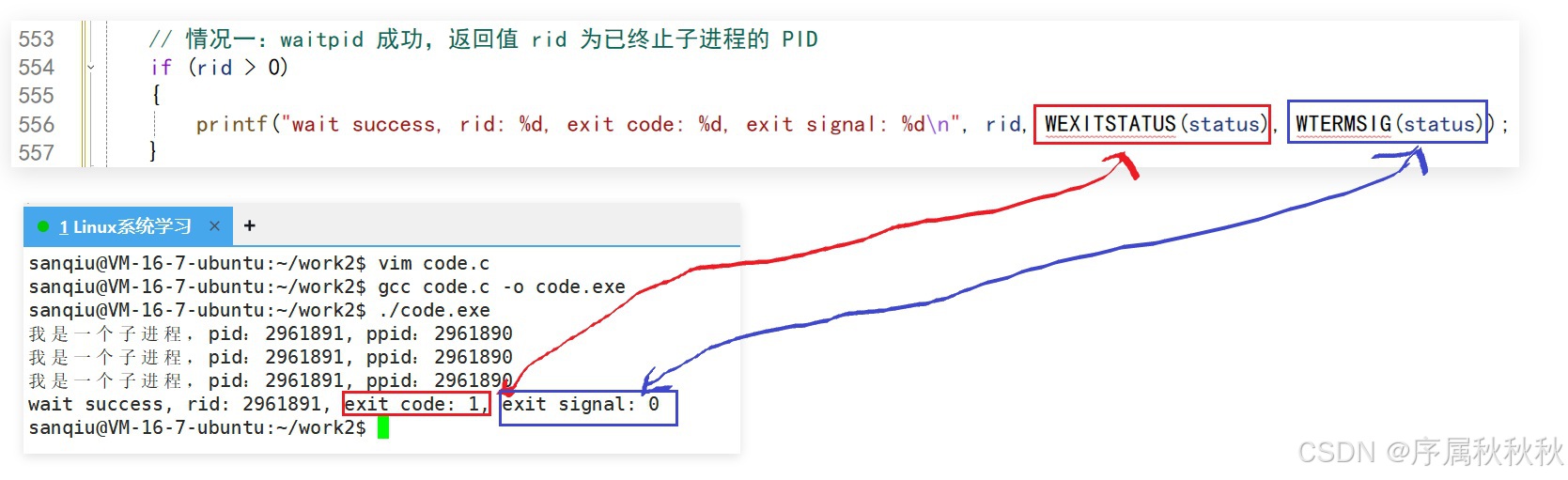 - wait 函数能够获取子进程的退出码