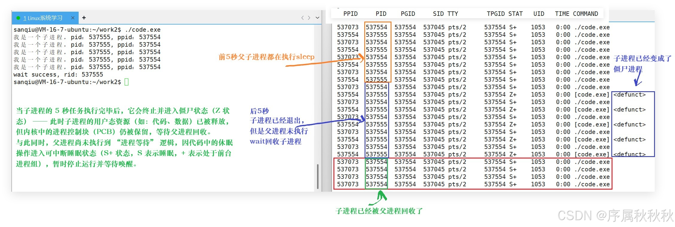 - 强制且必须的:回收子进程资源