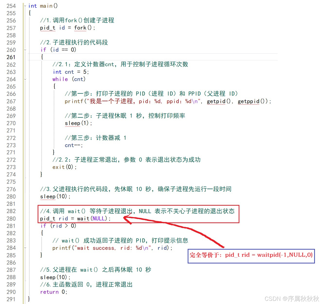 status是一个指向整数的指针,用于存储子进程的退出状态信息