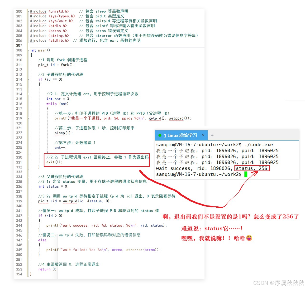 //1.1:解析子进程的退出码:
