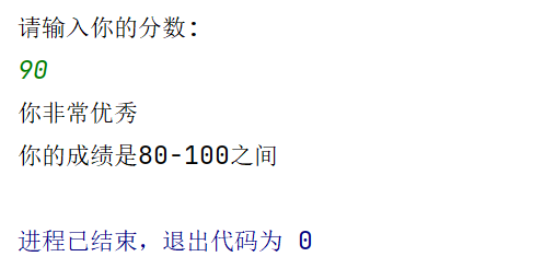 //if条件判断(if条件结构),你的成绩是80-100之间,你的成绩级别就是A