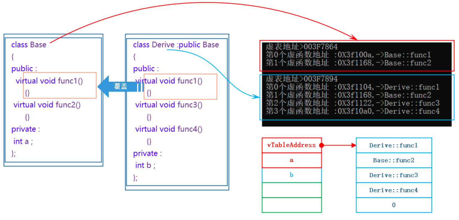 virtual void func1() { cout << "Derive::func1" << endl; }