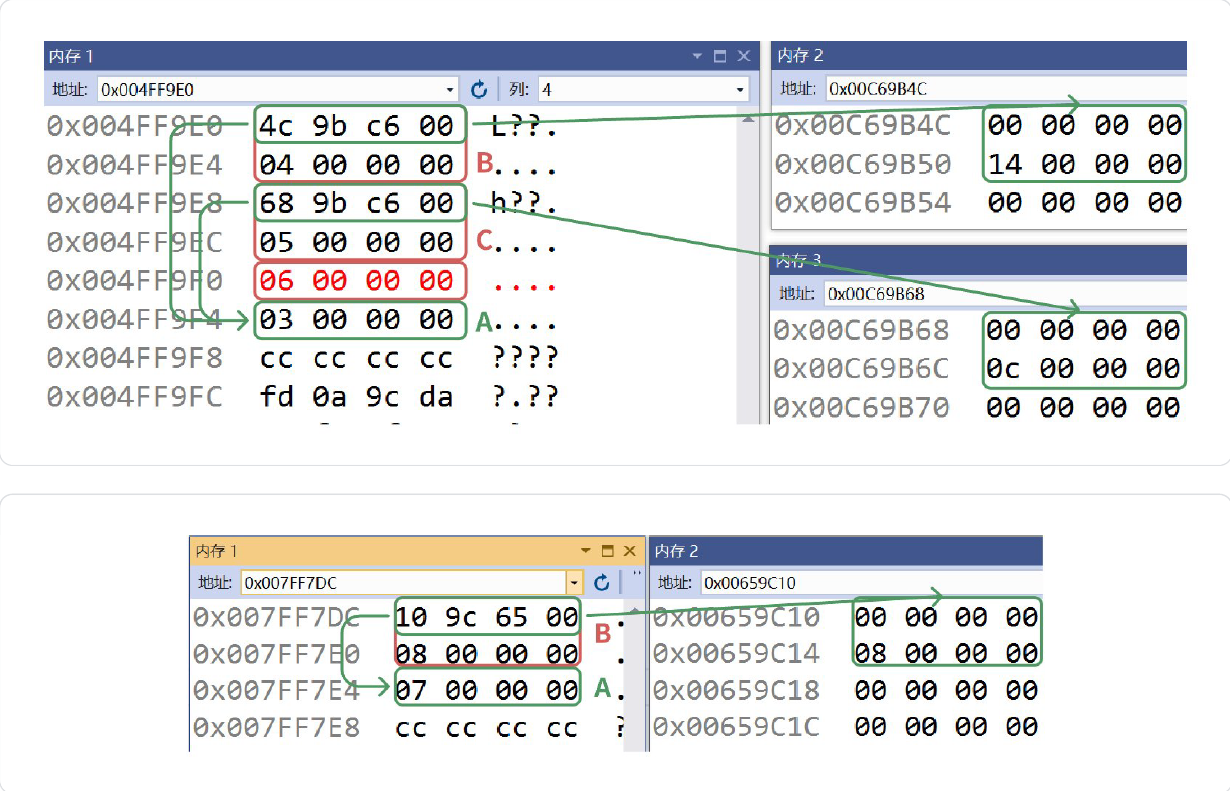 // 需要注意的是如果是在64位下,指针是8byte,对应程序位置就需要进行更改