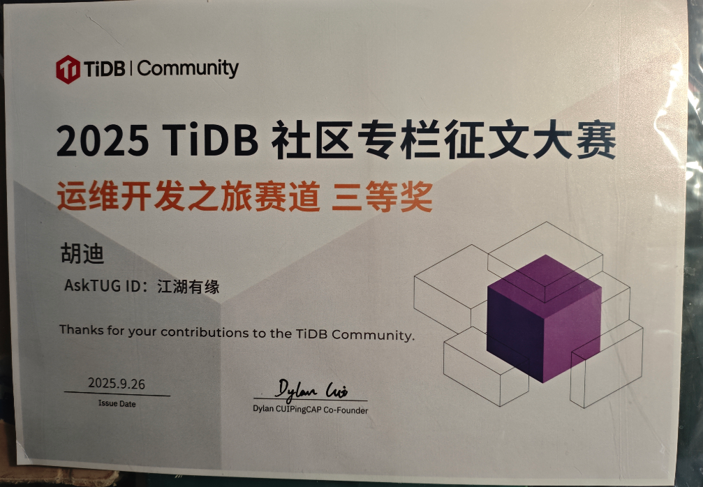- 🏆 TiDB 社区第四届专栏征文大赛(开发运维赛道)三等奖