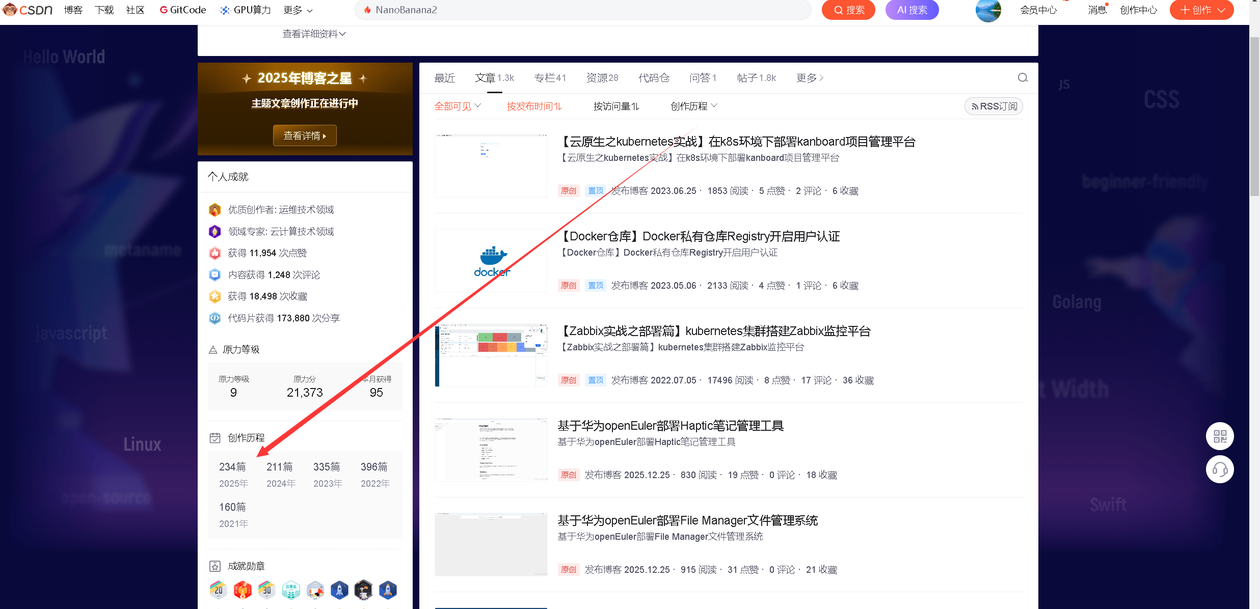 2025年,是我坚持在 CSDN 平台原创更新的第四整年(自2021年4月起),也是迈向博客创作第五年的关键节点。这一年,我共发布原创技术文章 234篇 ,累计原创内容已达 1,368篇。这些文章覆盖云计算、Linux系统、Kubernetes、自动化运维、Shell脚本、监控体系等多个方向,既是个人技术成长的轨迹,也逐渐成为许多同行------尤其是IT新人------解决问题时的参考坐标。