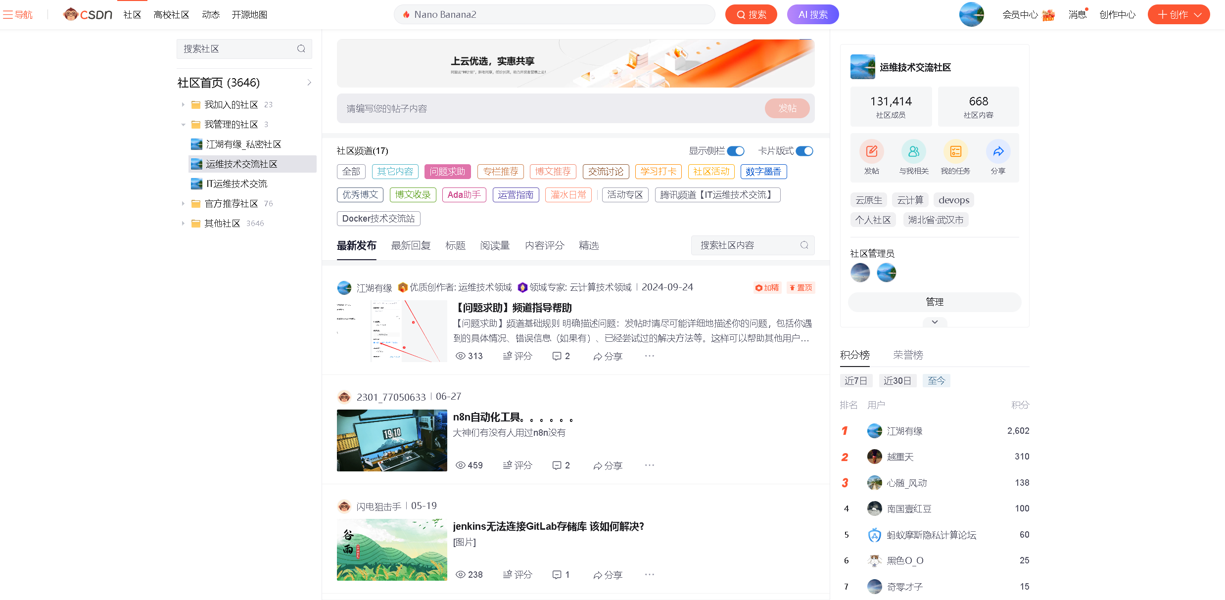 2025年,我将更多精力投入到个人技术社区的建设与运营中。当不少博主因耗时耗力而逐渐淡出社区时,我选择继续坚守------因为我始终相信:一个活跃、友善、有温度的技术社区,不仅能为IT运维新人提供宝贵的交流平台,更是创作者自我成长的"第二课堂"。在组织讨论、协调答疑、引导分享的过程中,我的沟通能力、运营思维乃至技术领导力,都得到了实实在在的锻炼与提升。
