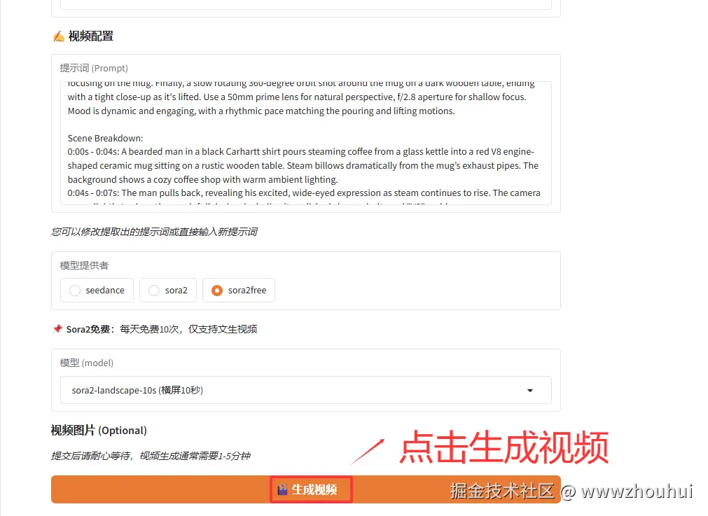 - 选择模型提供者(seedance / sora2 / sora2free)