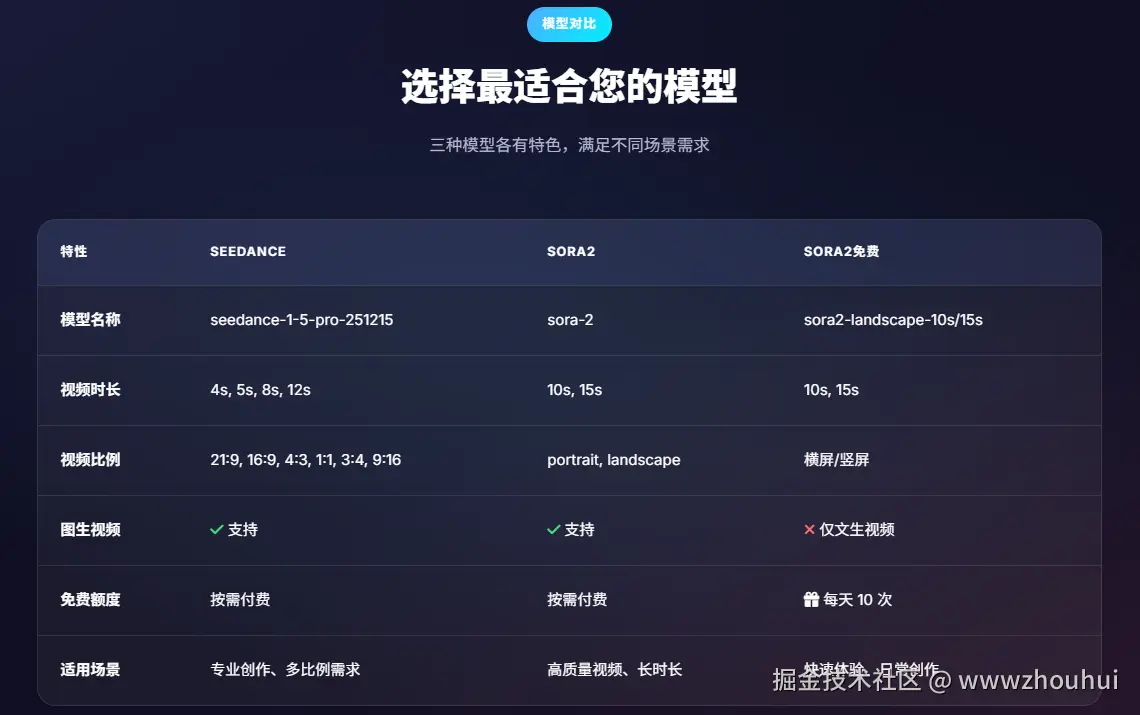 | 模型 | seedance-1-5-pro-251215 | sora-2 | sora2-landscape-10s/15s |