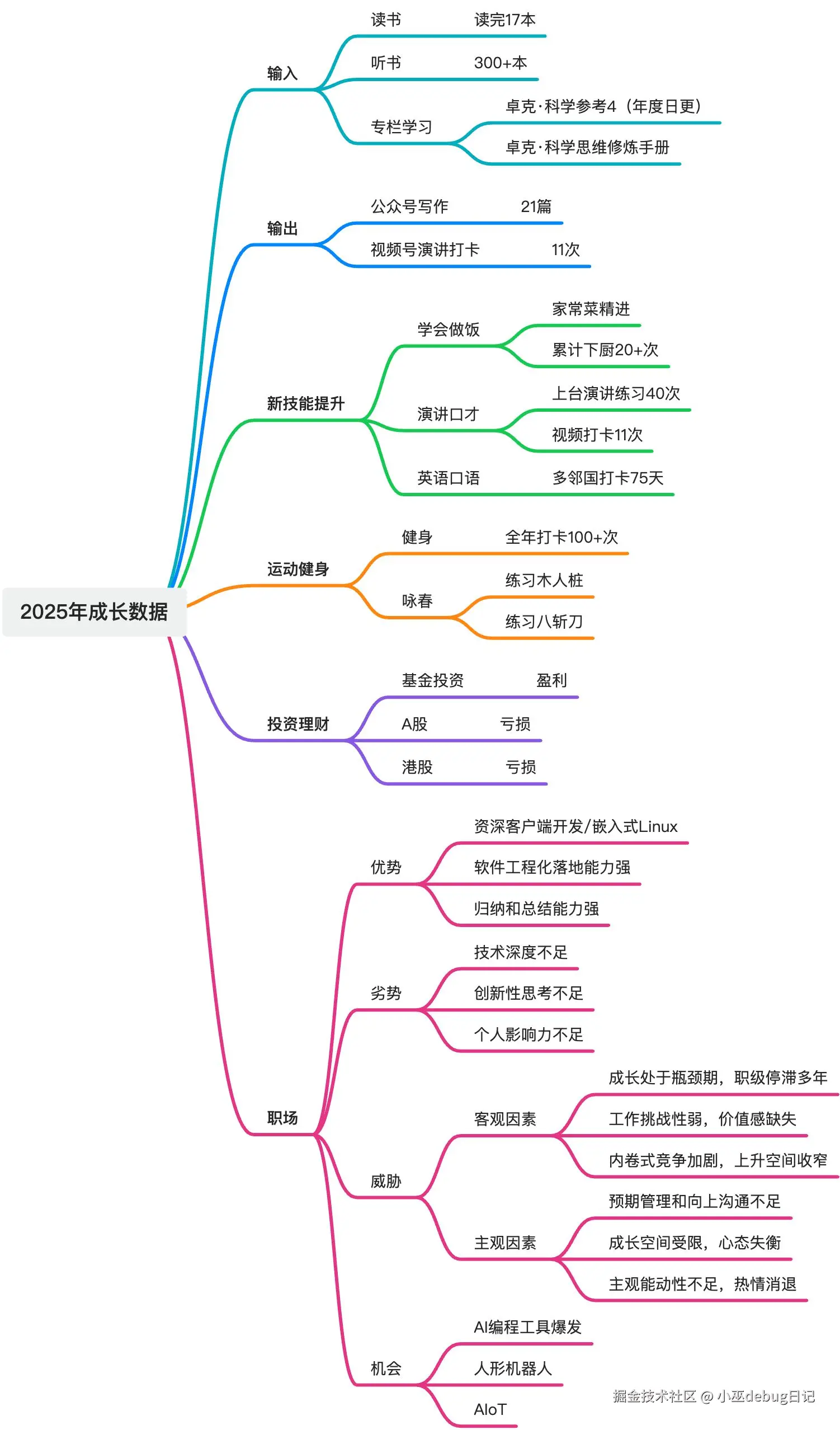 2025年目标主要围绕读书、写作、演讲口才、运动健康、理财投资等维度进行。