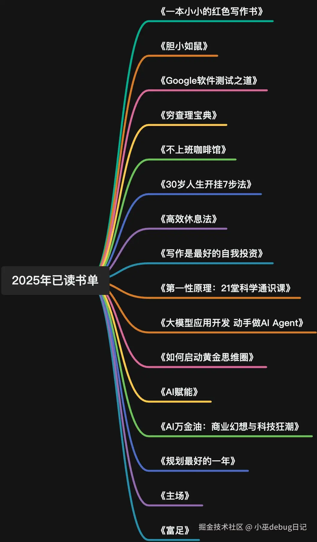 今年的书单主要集中在AI、思维提升 和个人成长类,阅读速度比较慢,每天15分钟。
