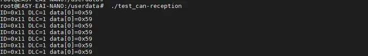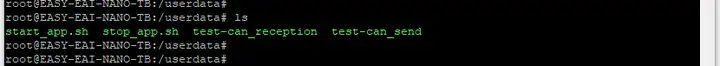 编译成功后,会生成2个demo,一个是发送端:test-can_send,另一个是接收端:test-can_reception。并会自动部署到开发板的/userdata/目录中。