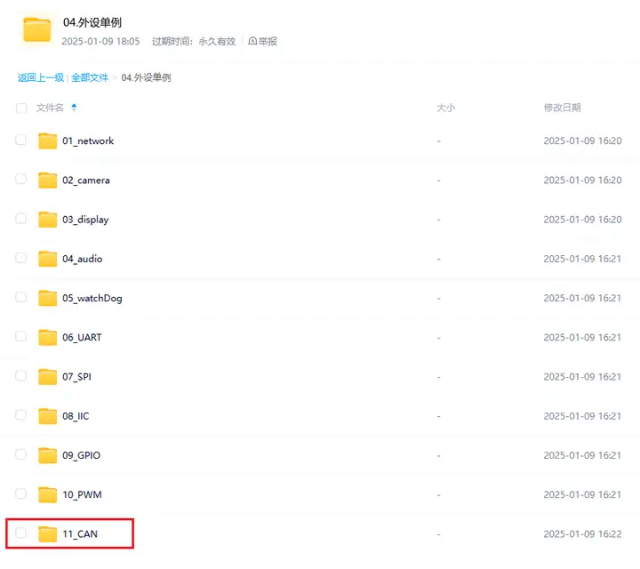 【接收端】例程源码为11_CAN/test-can_send/main.c,操作流程如下。