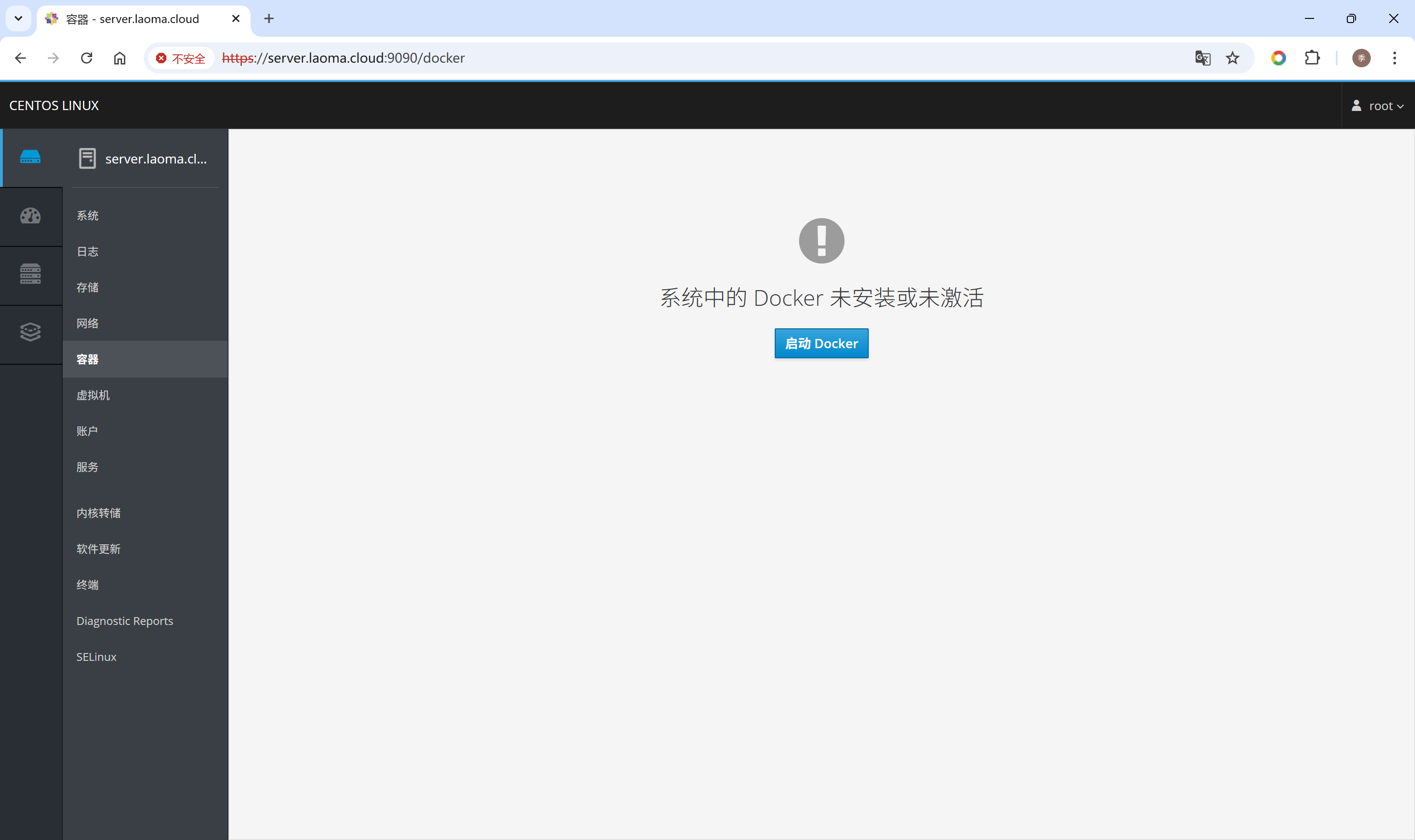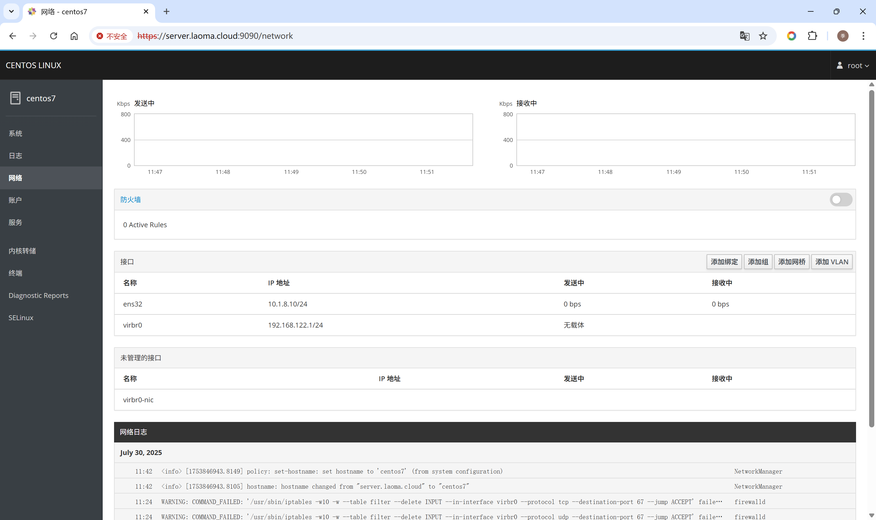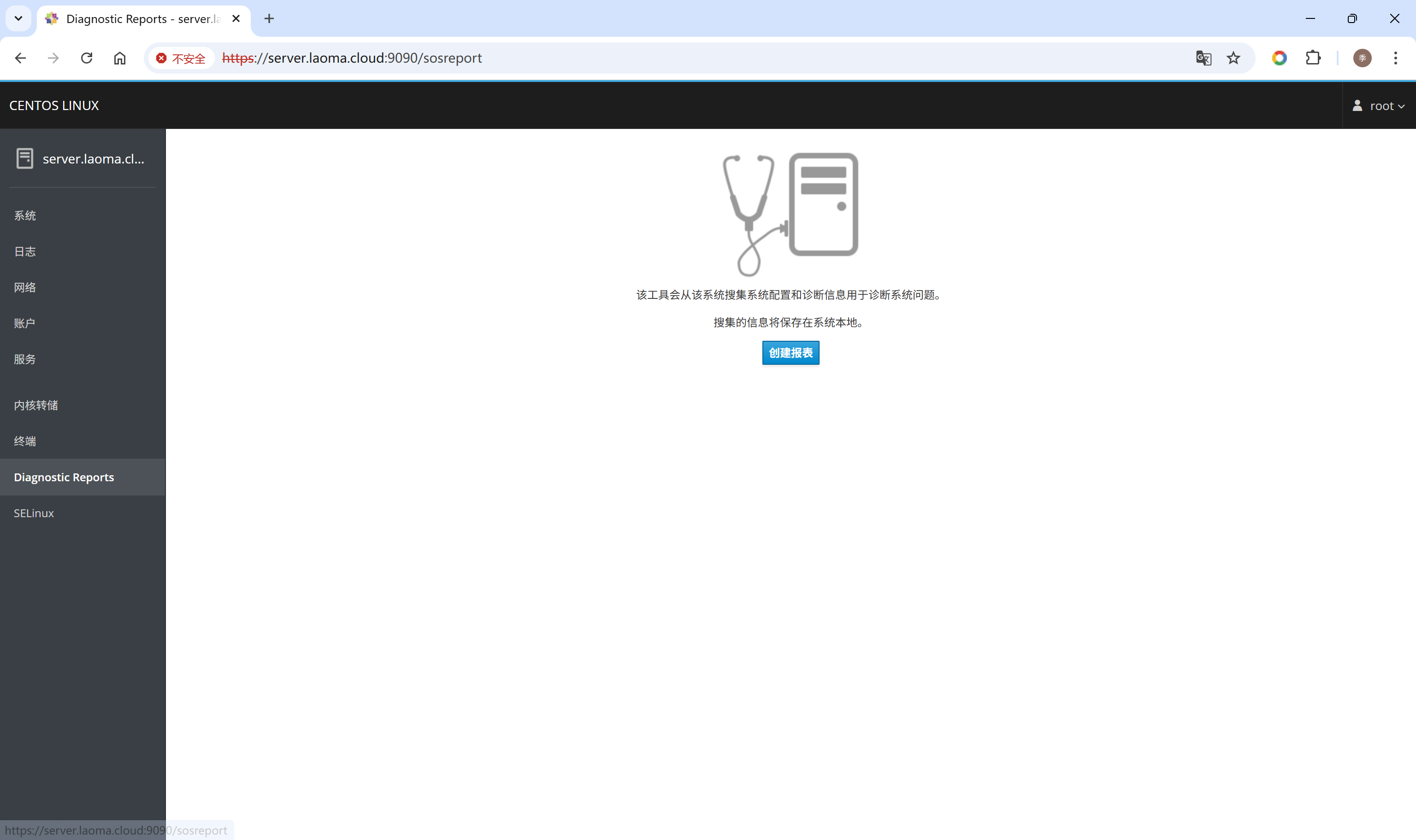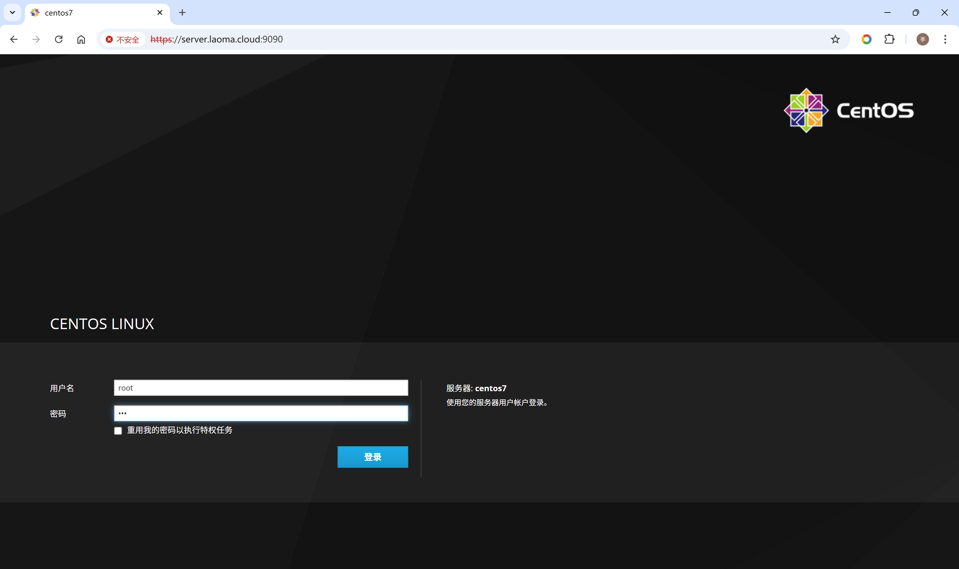 打开浏览器,访问Cockpit界面:https://hostname:9090