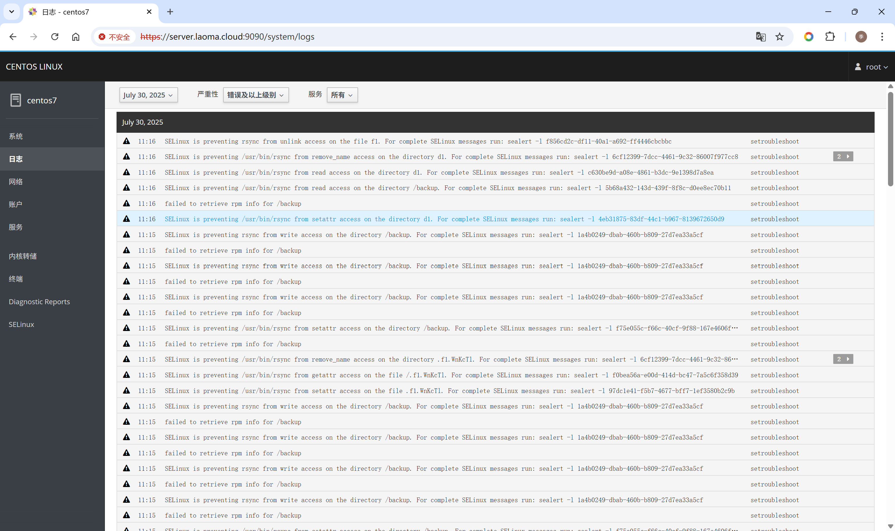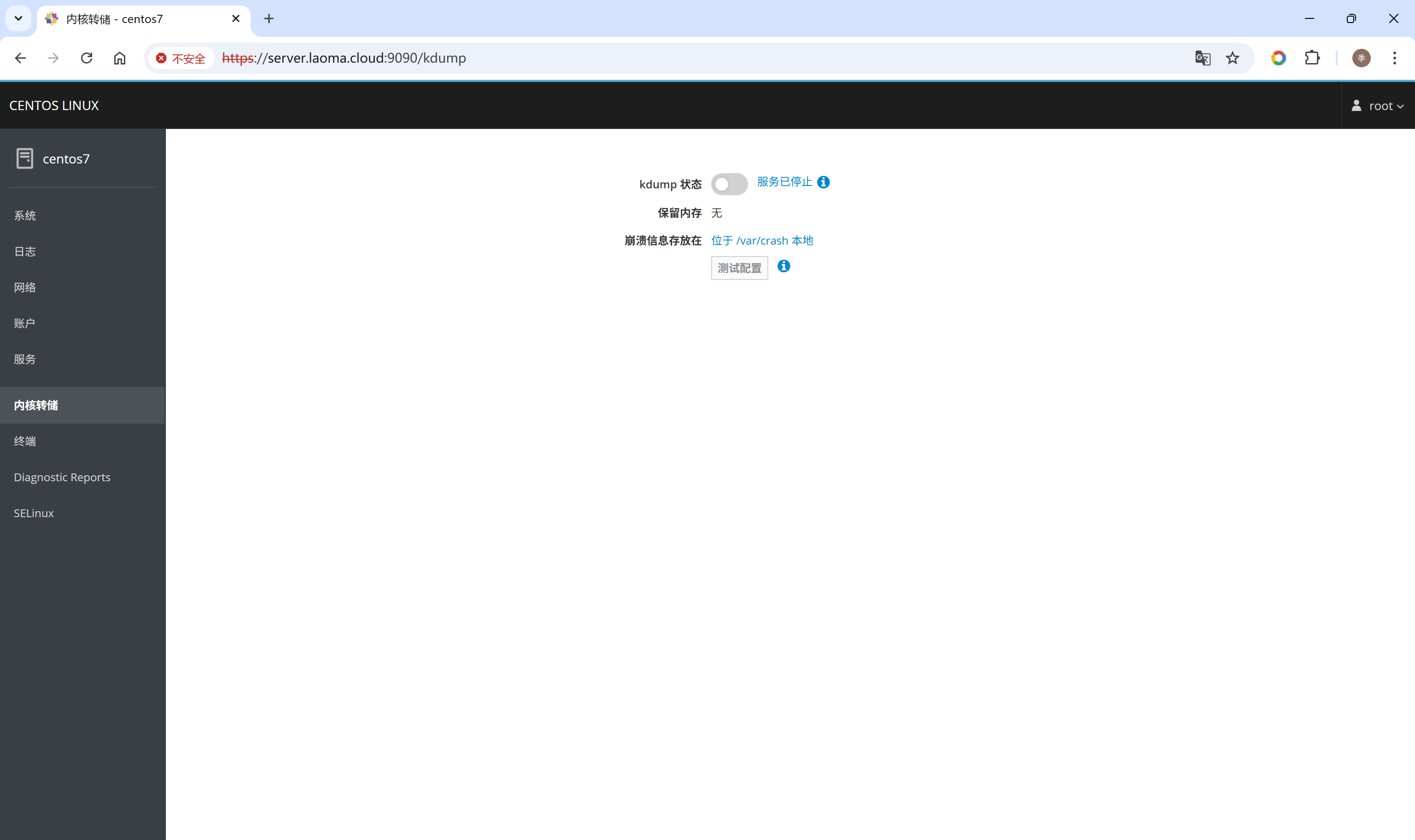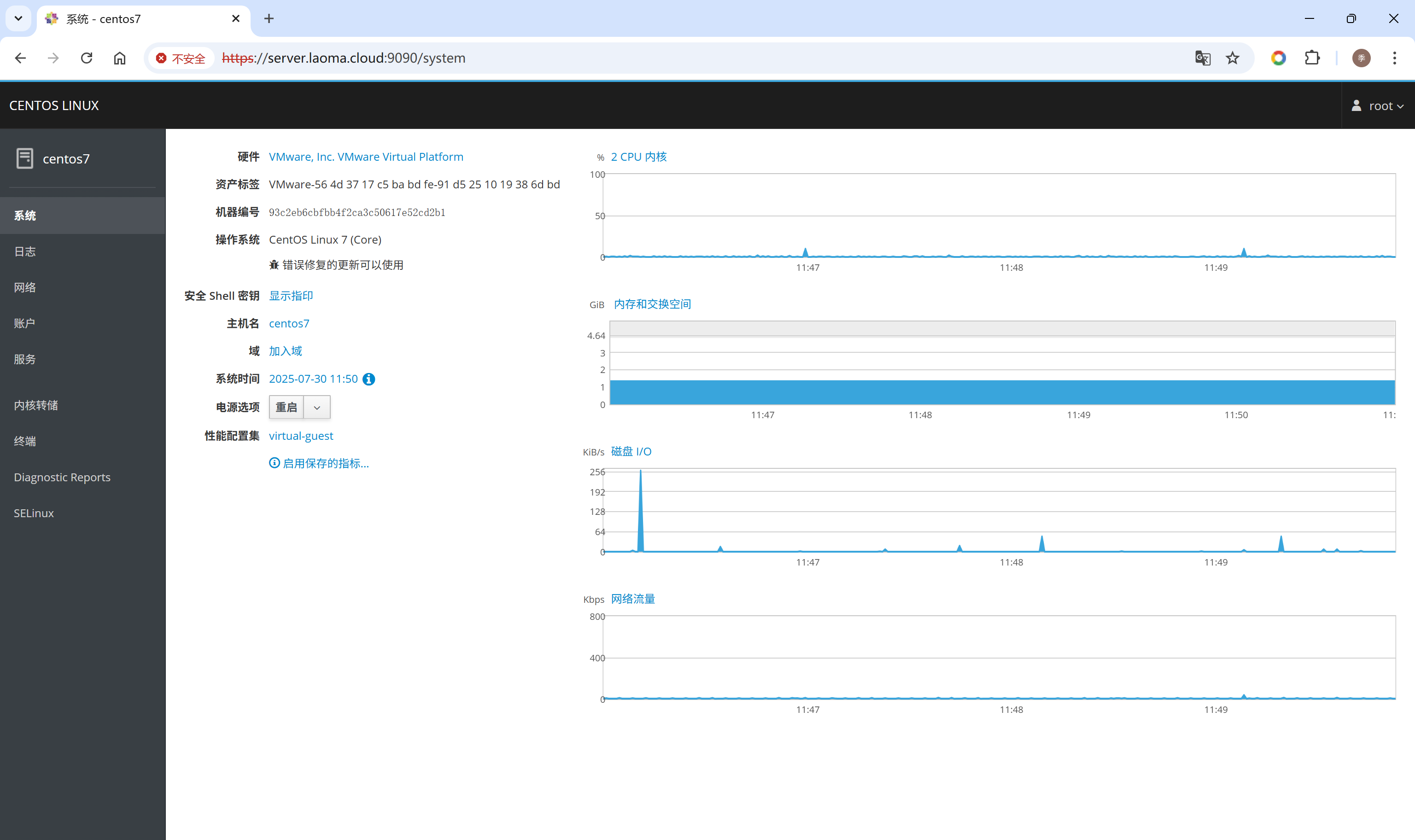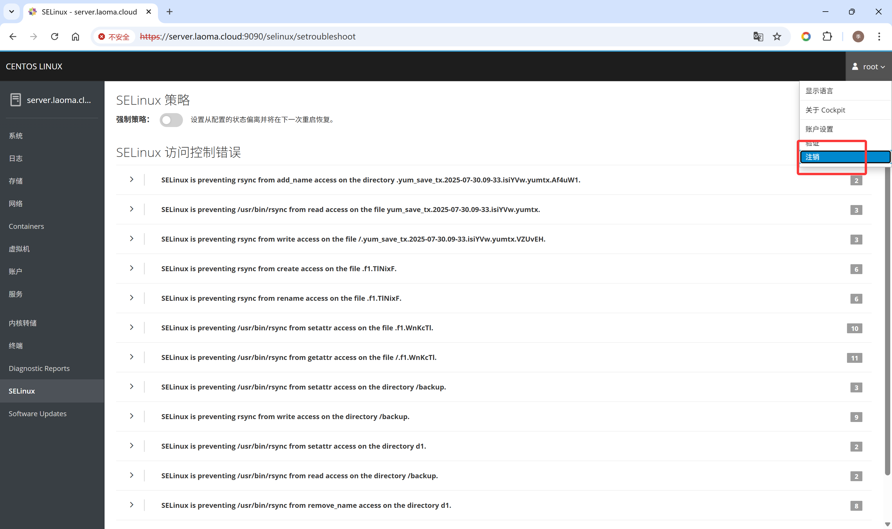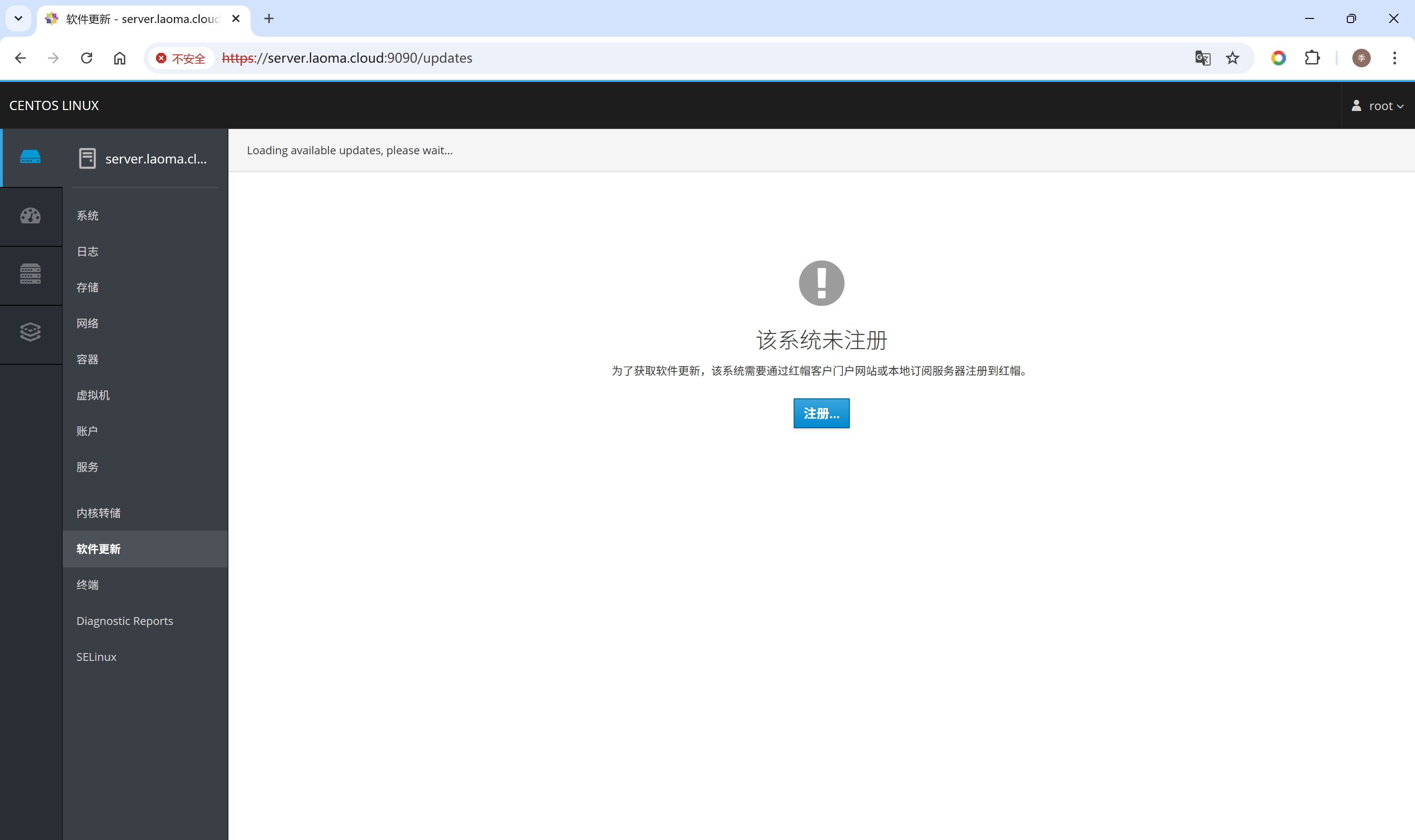 打开浏览器,访问Cockpit界面:https://hostname:9090