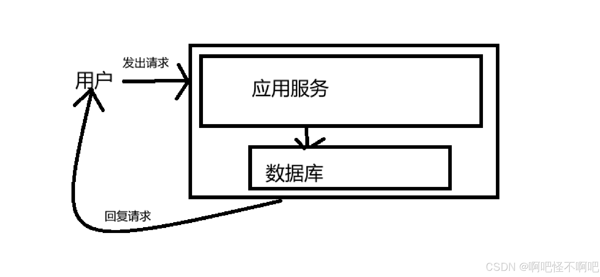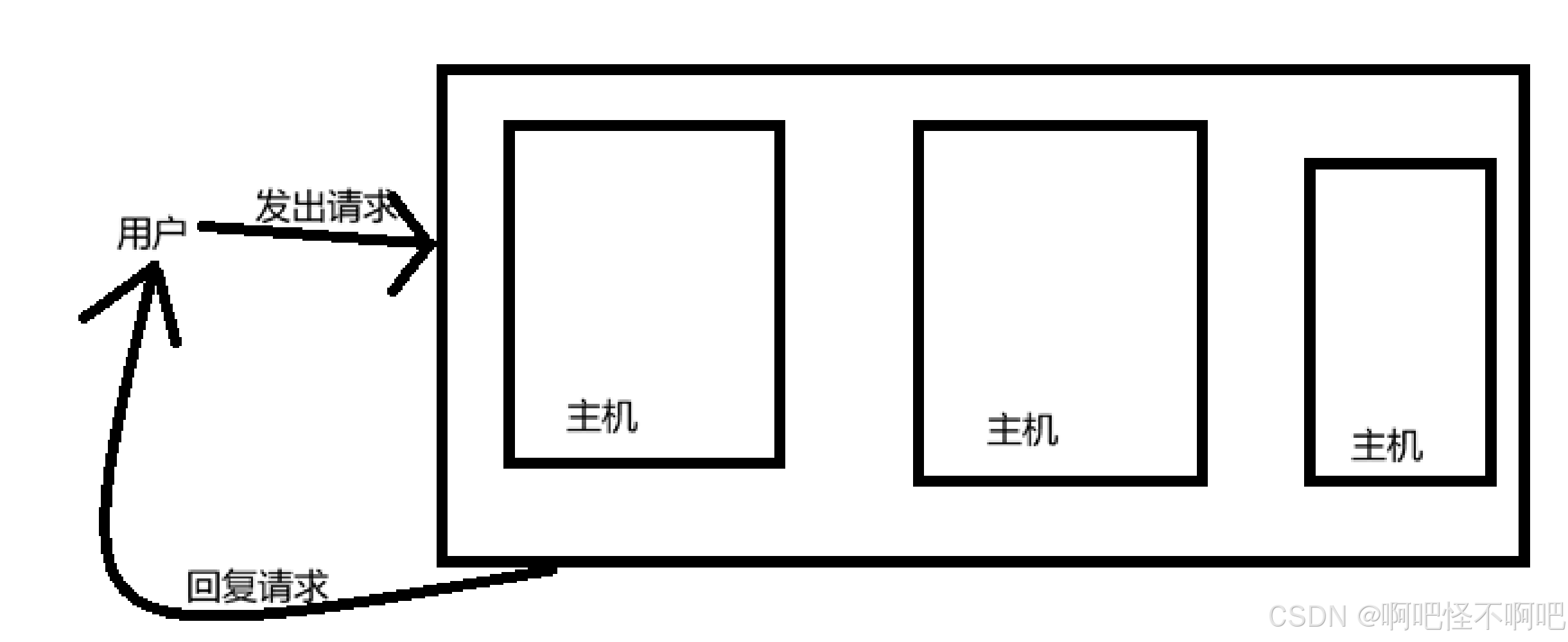 我们看下面这张图,单机架构的话其实就类似于下面这样,所有用户的请求都是由一台主机来进行接收已经回复的。
