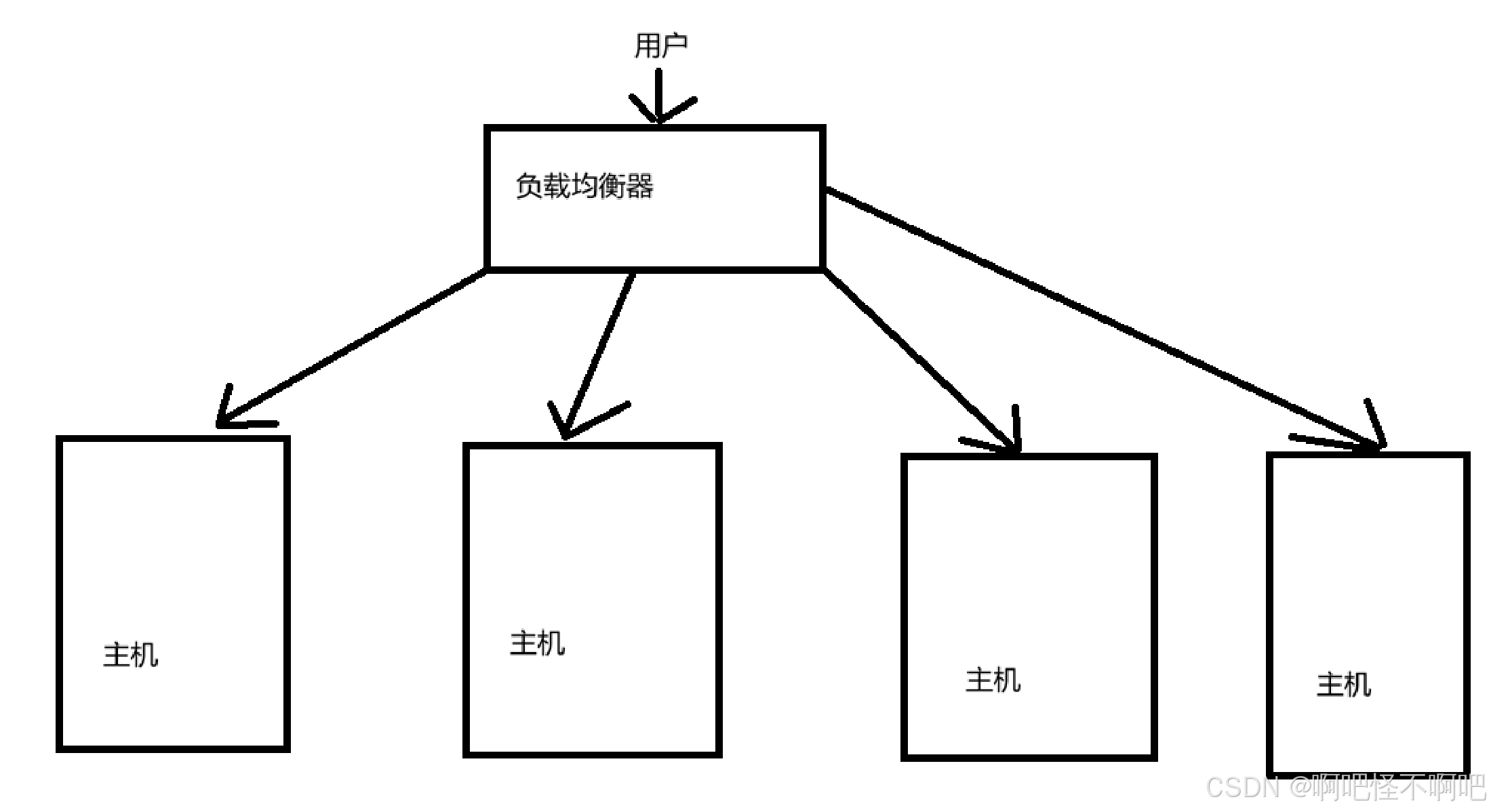 类似于下面这张图片这样。用户的任务会先给负载均衡器,然后负载均衡器来把任务交给各个主机。