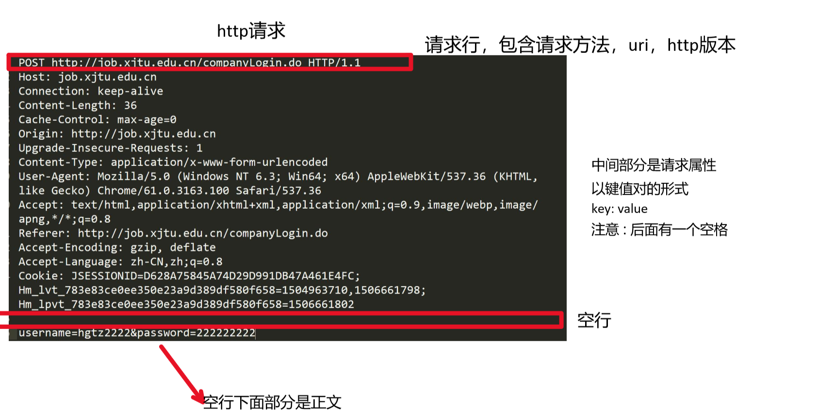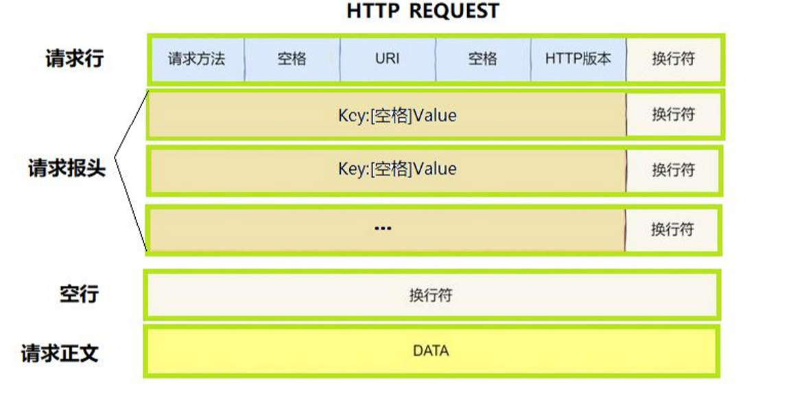 将整个请求看作是一个大的字符串,中间使用\r\n,或者使用一些空格,空行分割。