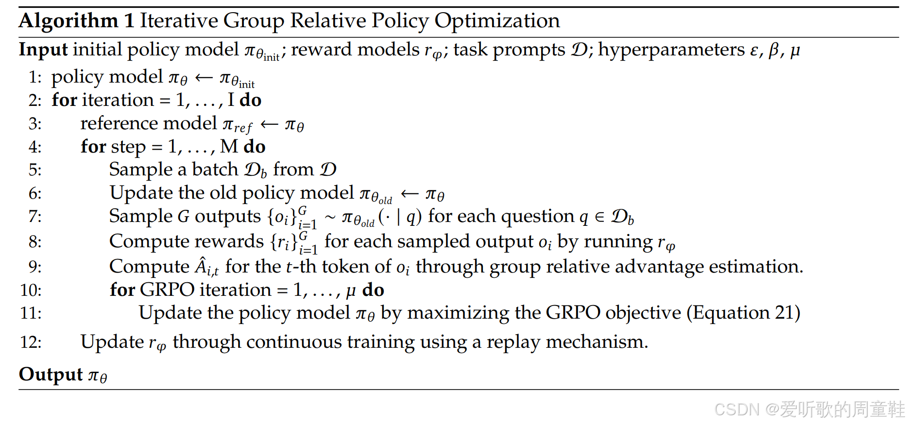 Q :在首次迭代中,GRPO 作用于最内层循环,初始状态下, π θ old \pi_{\theta_\text{old}} πθold 和 π θ \pi_\theta πθ 不是相等的吗?这样做是否会造成资源浪费?