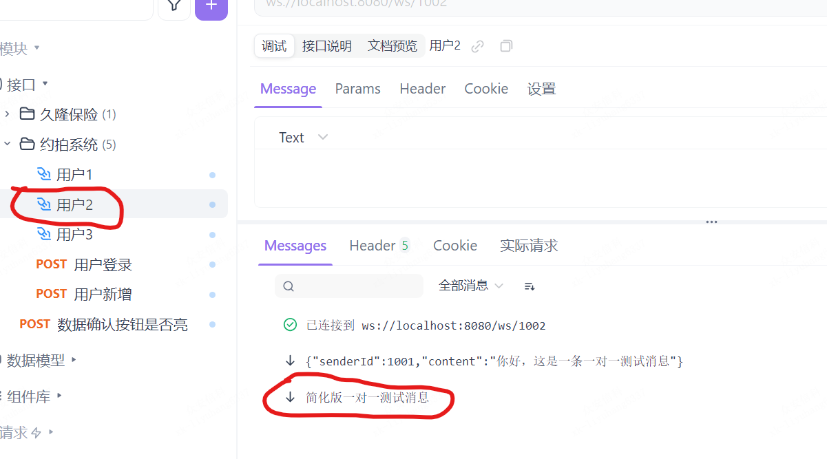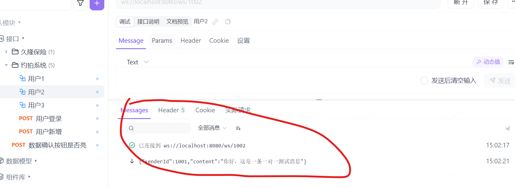我们点击连接用户1和用户2,用户1的id为1001,用户2的id为1002.