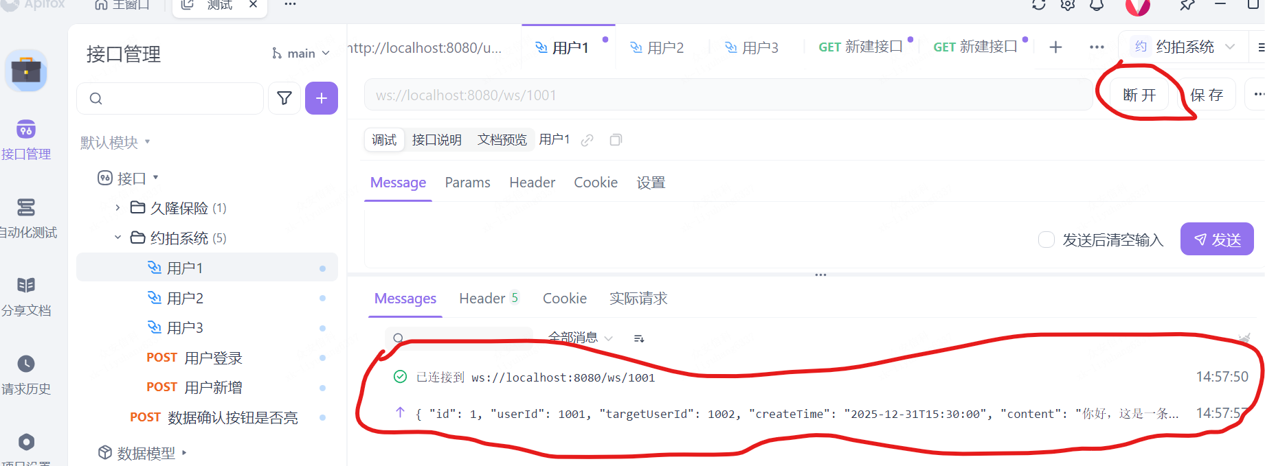 可以看到当连接成功后我们的连接按钮变为断开,消息框点击发送按钮后,也发送了消息。