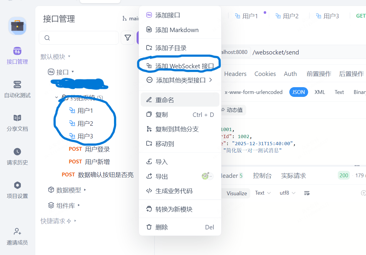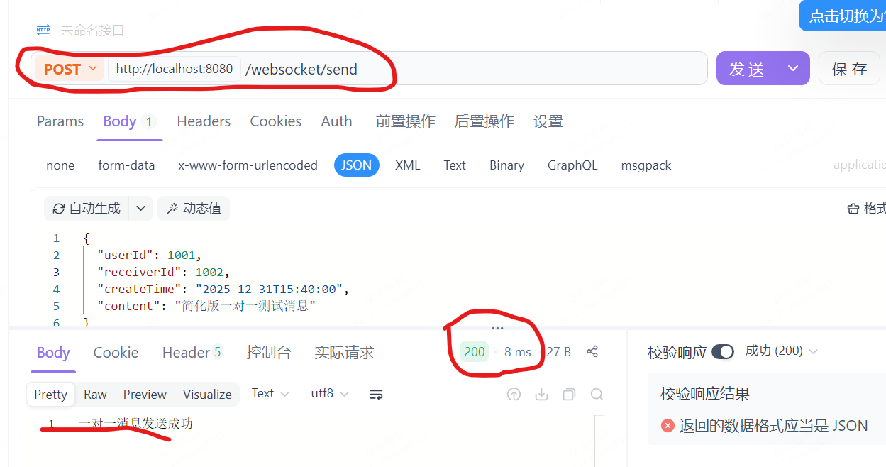 当然,在发送之前必须要websocket进行连接,不然端点类没有相关用户,也不知道给谁发消息了,