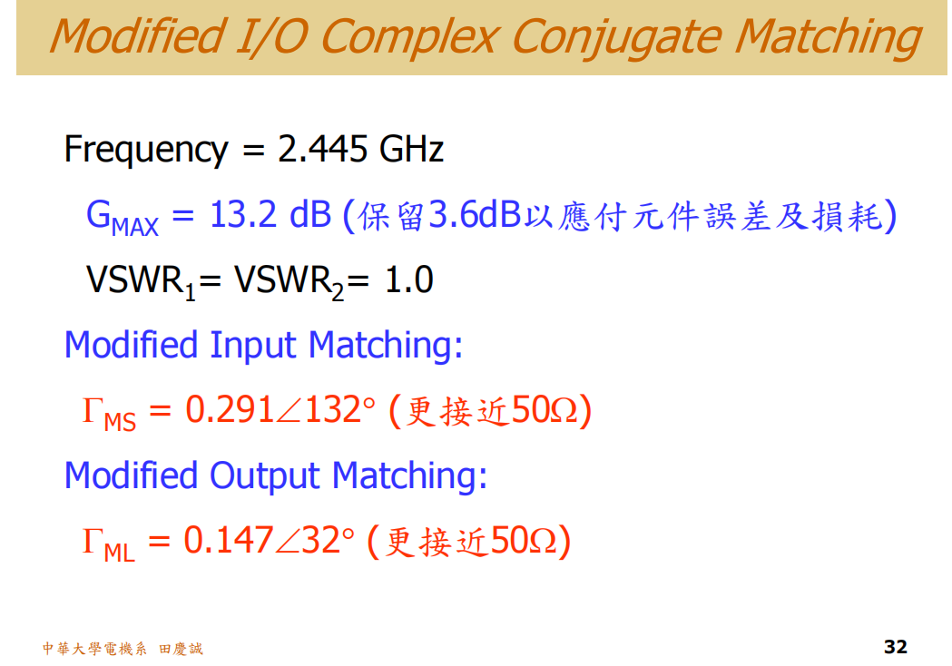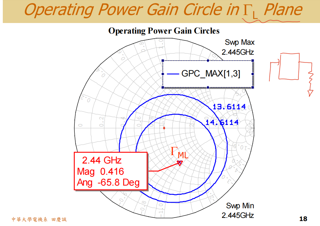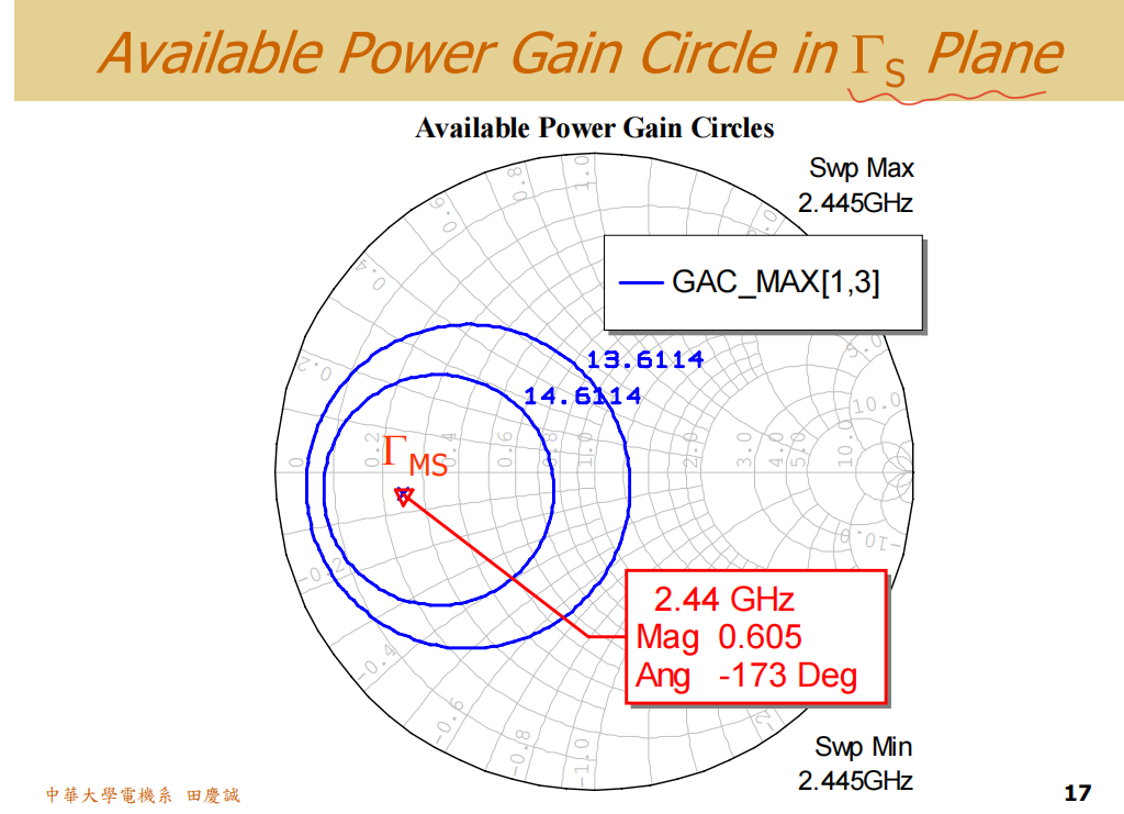 - 实现最大增益(GmaxG_{max}Gmax=15.6dB)时,晶体管需要特定的源反射系数 ΓMSΓ_{MS}ΓMS 和负载反射系数 ΓMLΓ_{ML}ΓML。