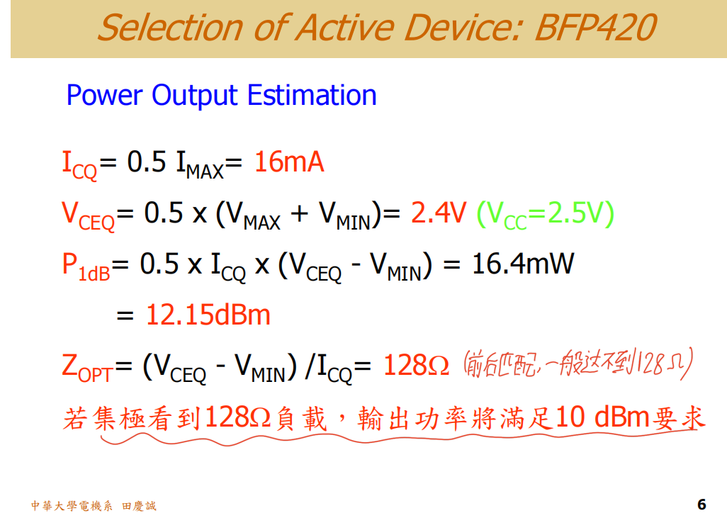- 目标负载 :为获得最大输出功率,晶体管应看到约 128Ω 的纯电阻负载。