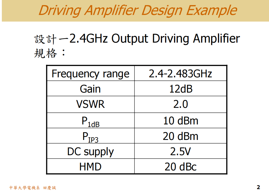 现在,我们来看看这个设计具体会运用到哪些理论。我们先为这个驱动放大器的设计实例设定一些规格参数: