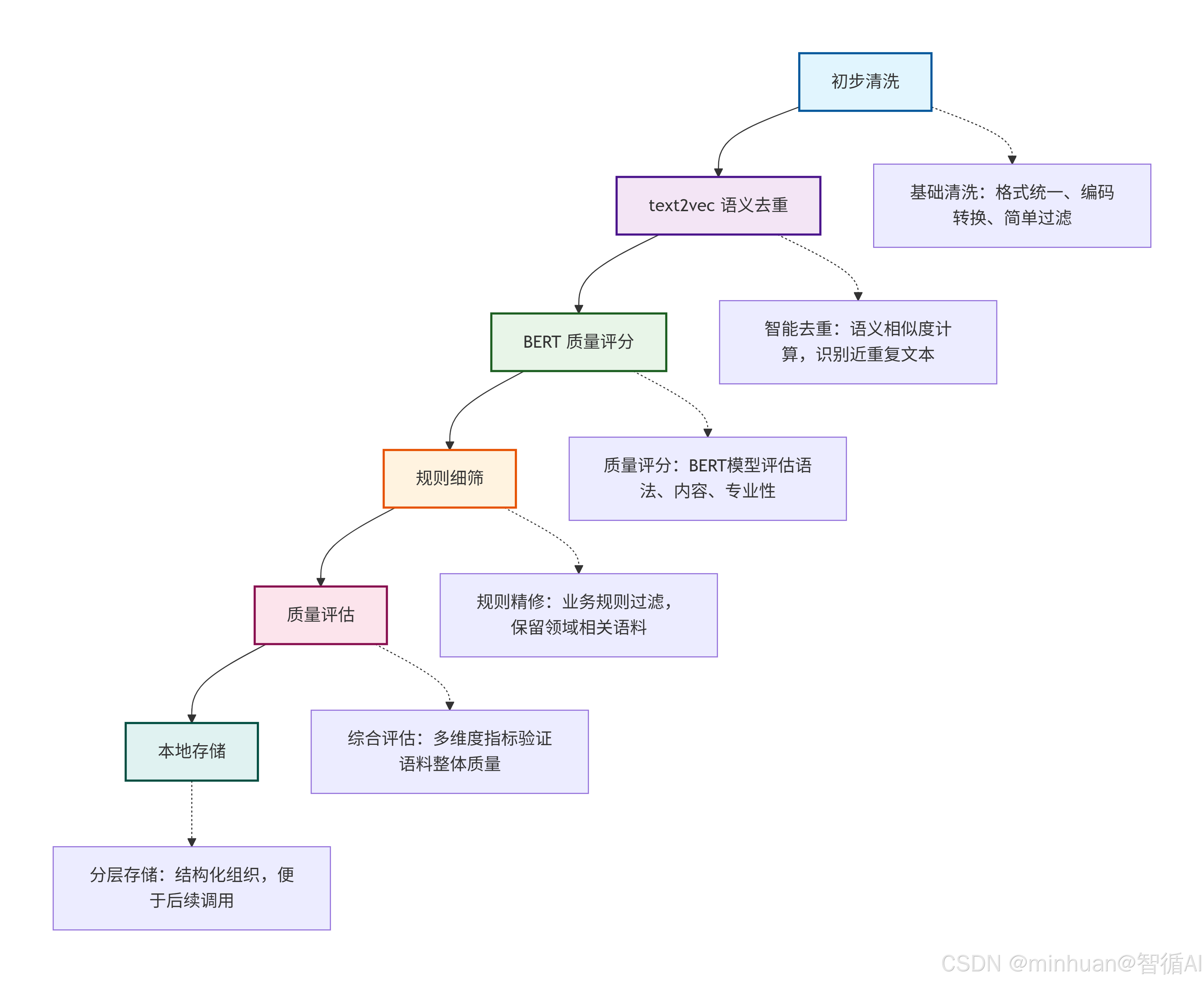 - 规则细筛:修正错别字、病句、偏见内容,统一格式;