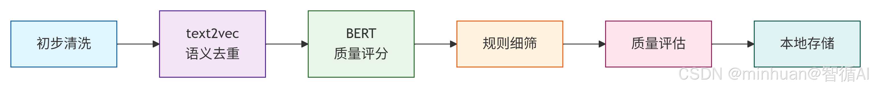 技术选型需精准适配任务特性。在治理流程中,text2vec凭借其高效的语义向量化能力,擅长深度识别并去重语义相似的文本;而BERT基于其强大的语义理解能力,则更适用于对文本的语法、逻辑和内容质量进行精准评分与筛选。两者结合,构建了从识别重复到评估质量的完整技术闭环。