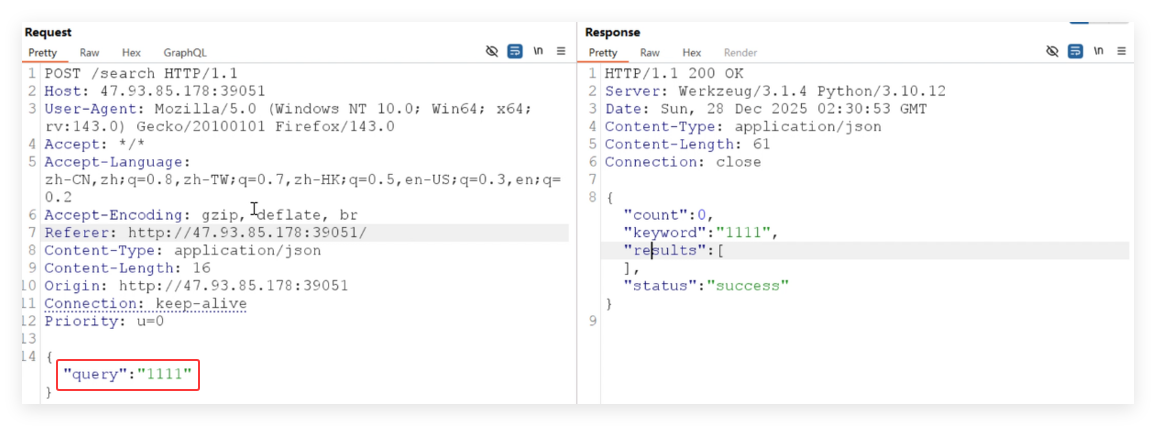 通过POST方法,向/search接口发送JSON格式数据 的HTTP请求