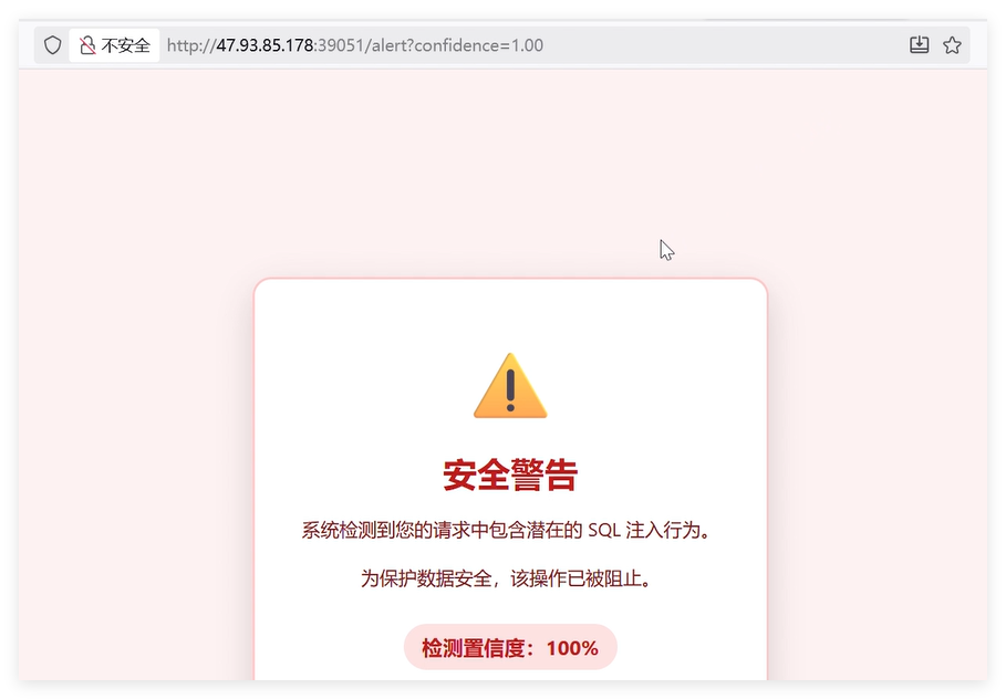 访问alert页面,发现是一个SQL检测识别的页面,这个应该就是题目中的AI_WAF,用来判断