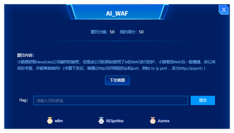 根据提示,题目明确提到 "NexaData公司存储 ",这通常和数据库相关。并且提示AI_WAF,