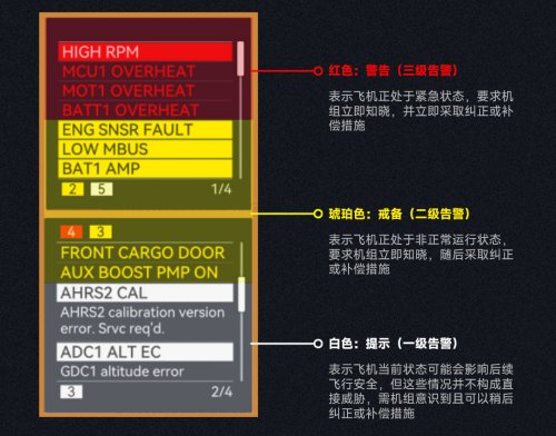 更贴心的是,AE200系列搭载的CAS 告警系统通过红、黄、白三级警示,清晰呈现飞行状态,配合覆盖全机的智能故障识别与辅助决策功能,让飞控系统如同一位全天候 "智能副手",大幅降低人机交互负担,让飞行员专注核心飞行任务。