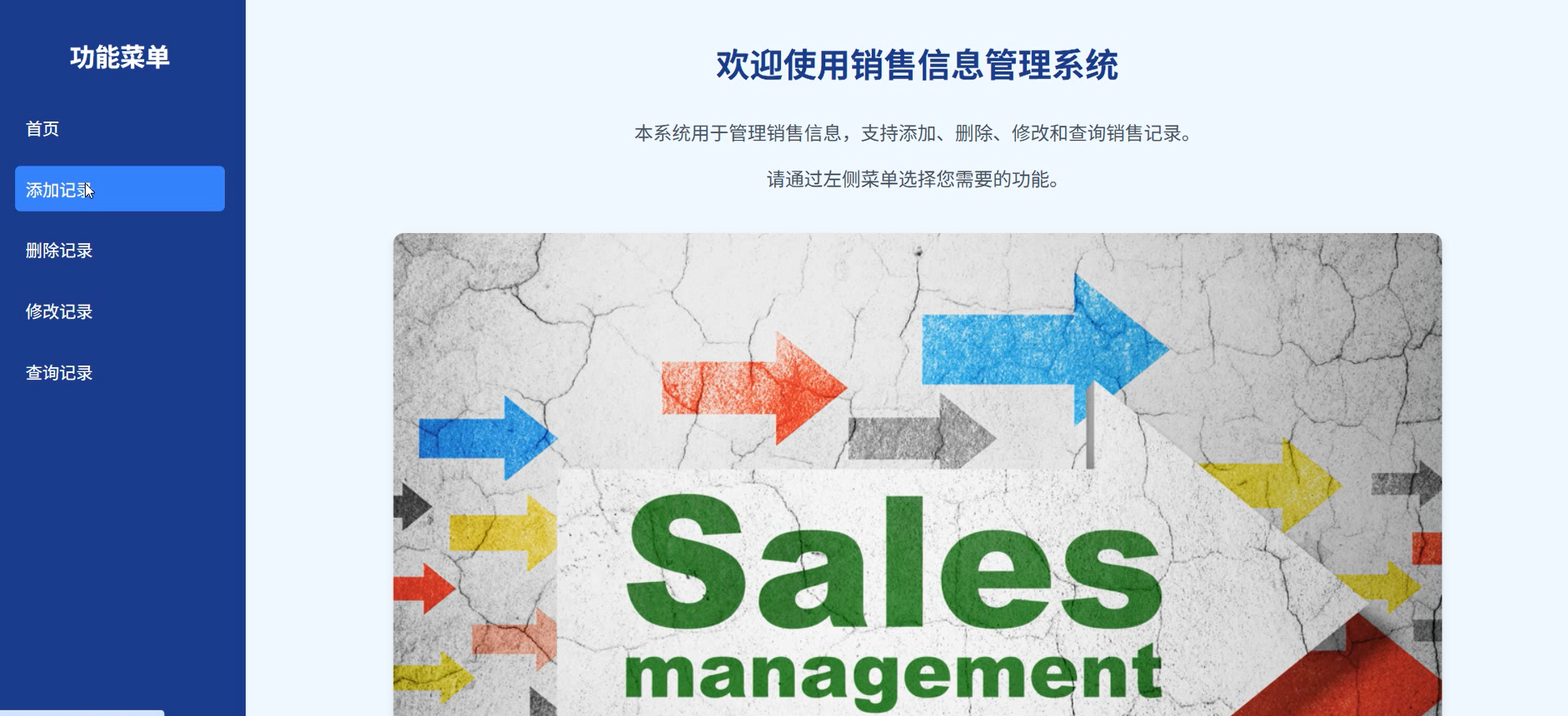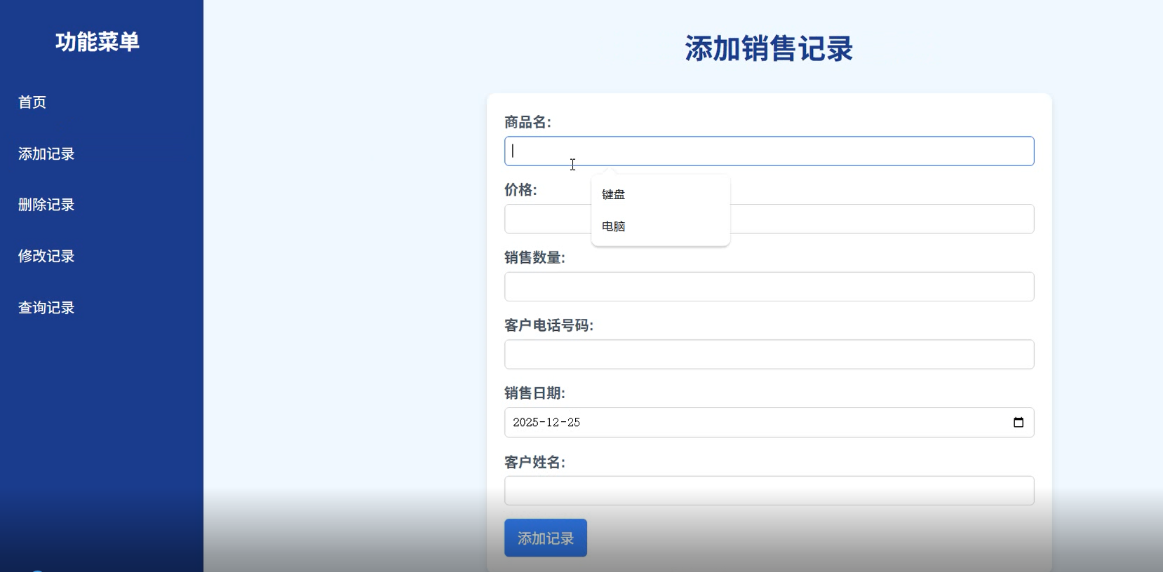 核心功能:表单提交新的销售记录,字段与数据库表一一对应。