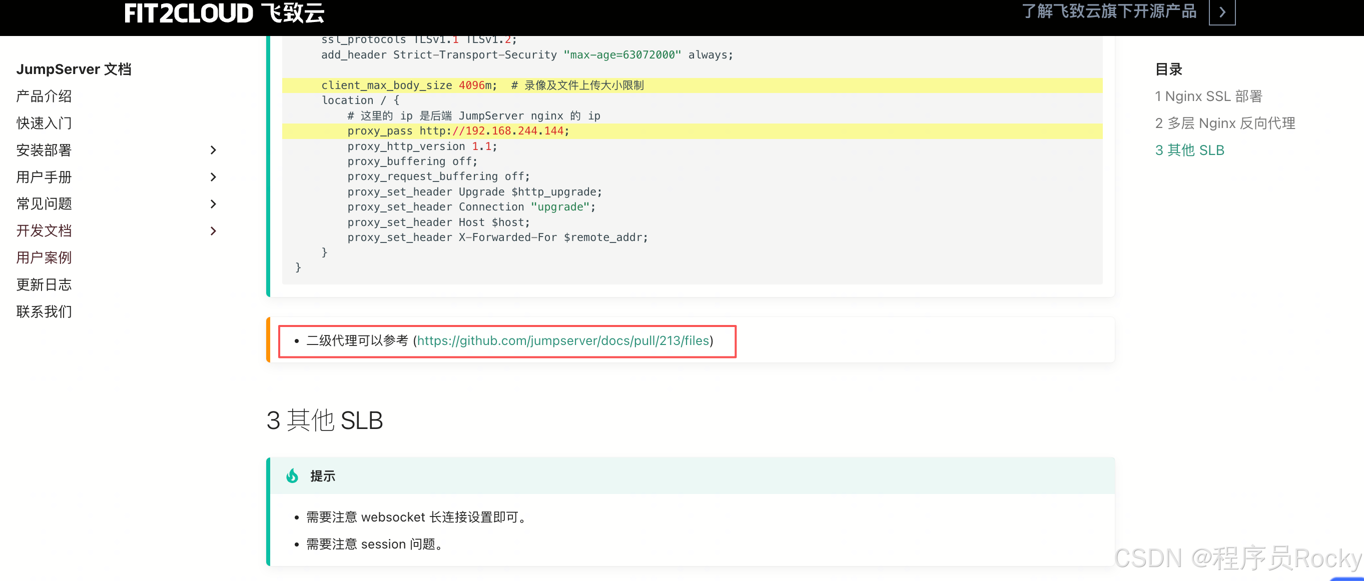 官网原文链接: https://docs.jumpserver.org/zh/v4/installation/proxy/?h=%E5%8F%8D%E5%90%91%E4%BB%A3%E7%90%86#3-slb