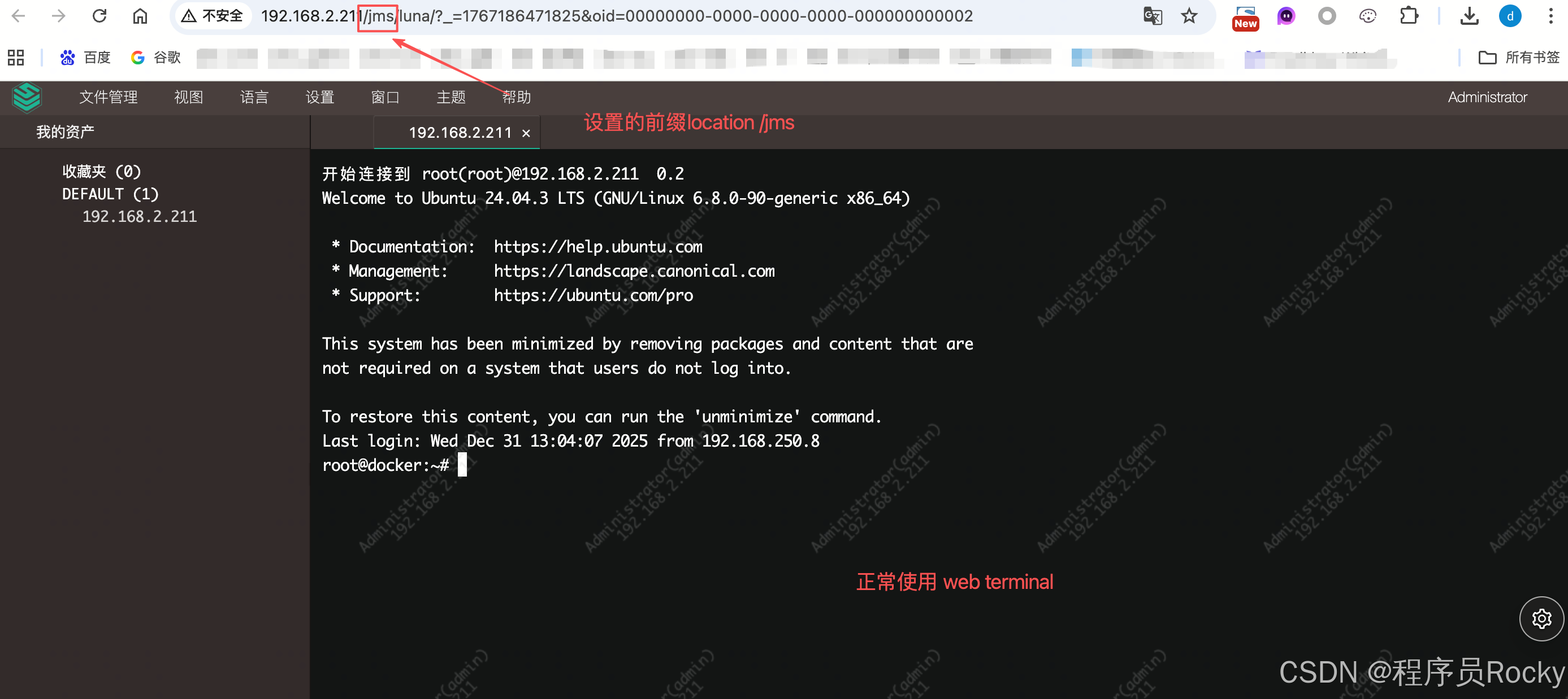 好像很简单对吧,配置nginx的location /jms即可。但是理想很丰满,现实很骨感。 这里提供的配置文件,替换的url不全,导致前端界面跳转存在问题。