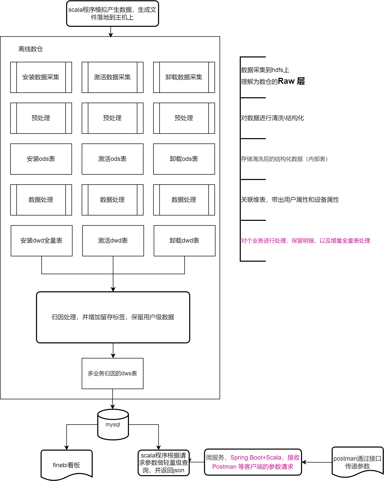 本项目采用scala进行编程,实现数据生产和采集,spark on hive的数仓模式来做数据处理