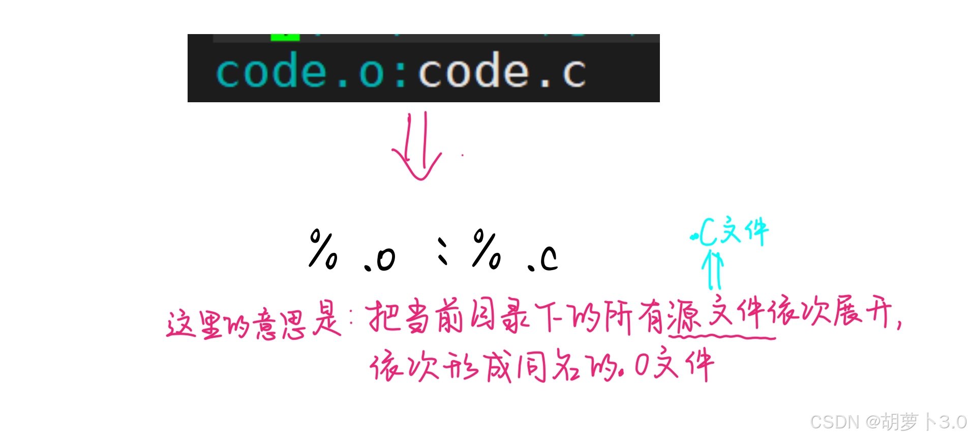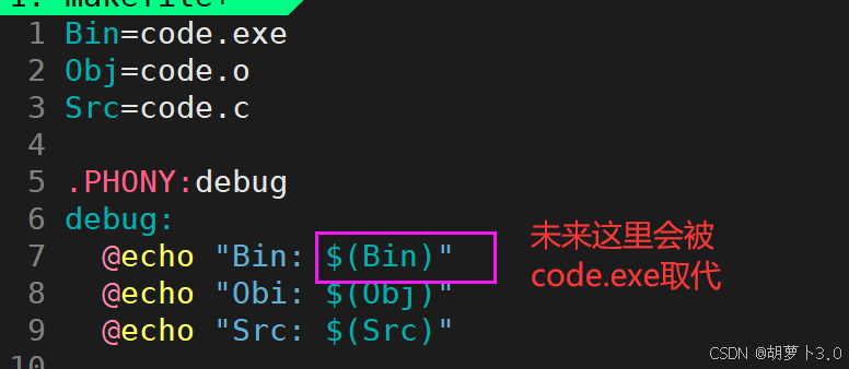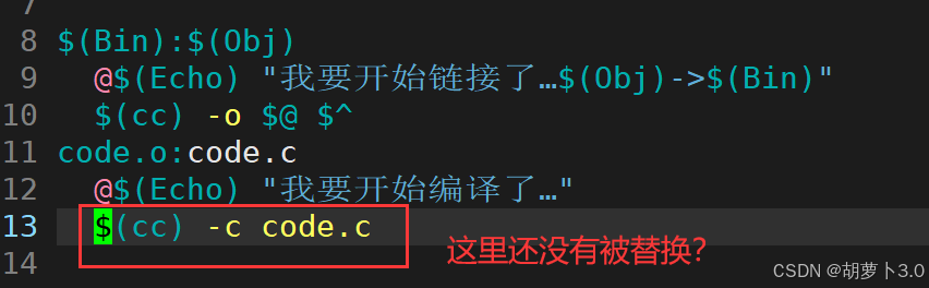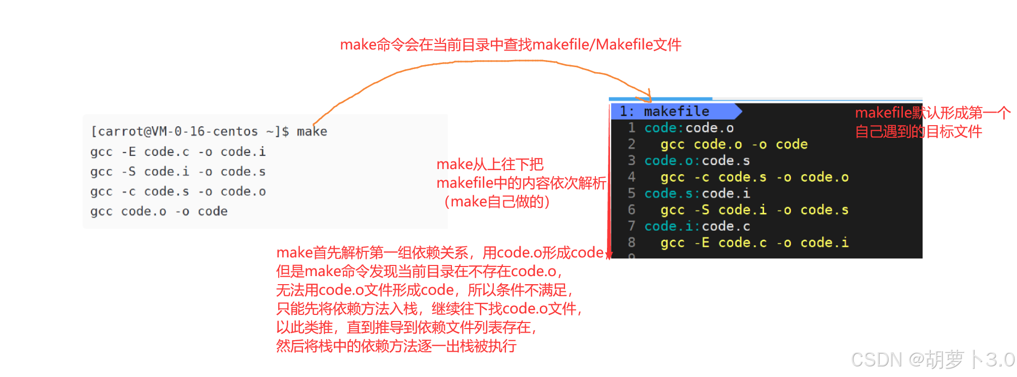 code: code.c # ← make 默认执行这个(第一个目标)