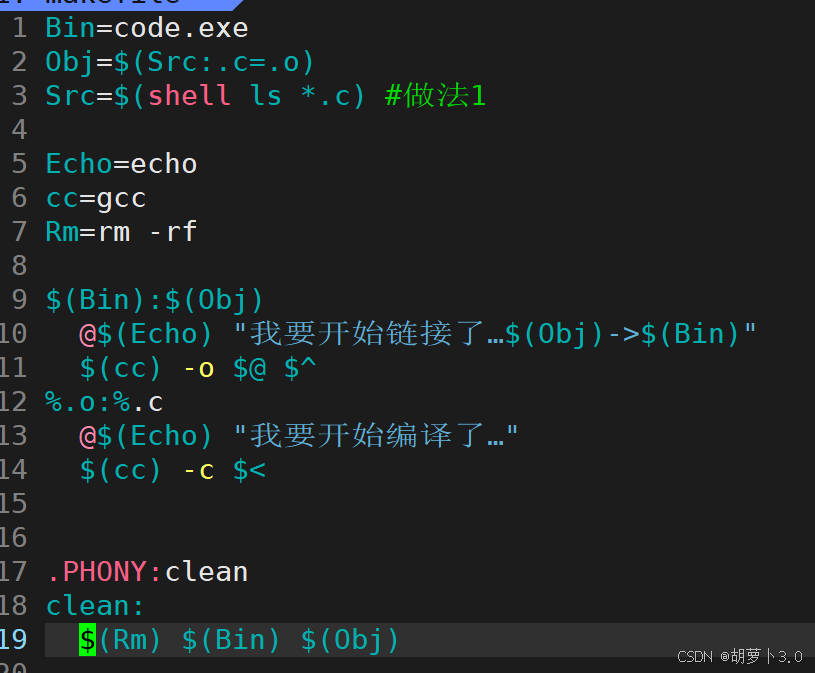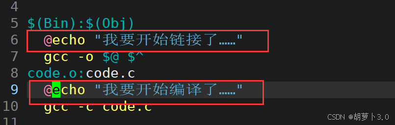 我们在执行命令前面带@,不要让他把命令的执行过程回显出来,方便后续对makefile的输出进行定制化输出