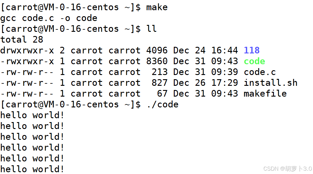 [carrot@VM-0-16-centos ~]$ ./code